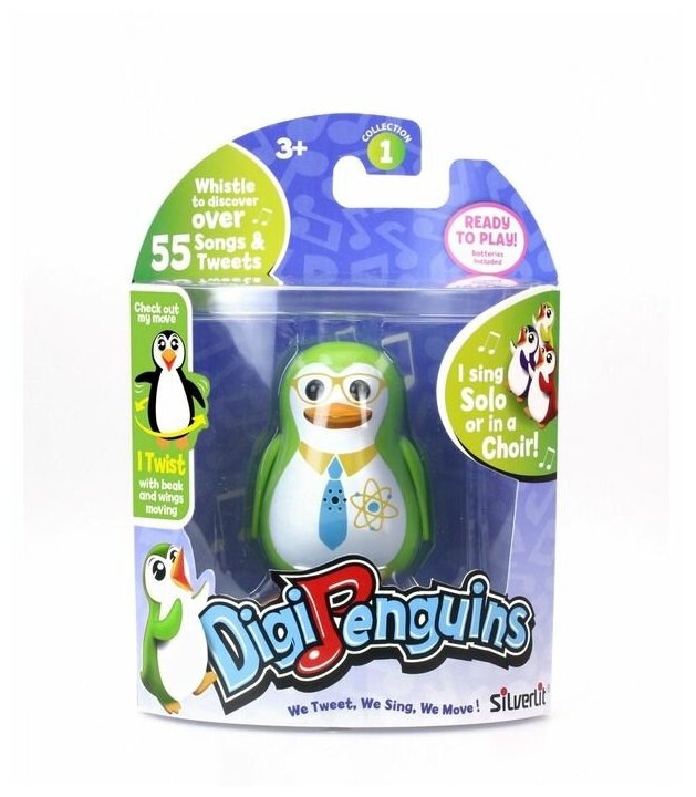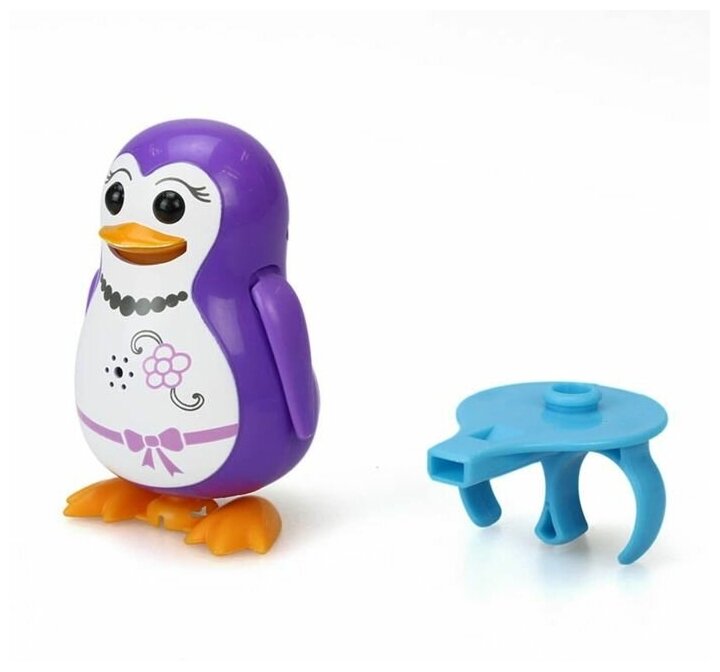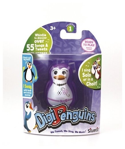 Интерактивная игрушка DigiBirds Пингвин с кольцом умеет петь, издавать забавные звуки и двигаться в такт мелодии. Для включения достаточно подуть на ее клюв, взмахнуть ею в воздухе или воспользоваться свистком. При установке нескольких птичек DigiBirds на расстоянии до 15 см они могут синхронизироваться, создавая настоящий хор! Свисток снабжен специальным креплением и двумя кольцами, позволяющими носить фигурку на руке. Игрушка изготовлена из качественных материалов и не содержит мелких деталей, что делает ее безопасной для детей в возрасте от 3 лет.