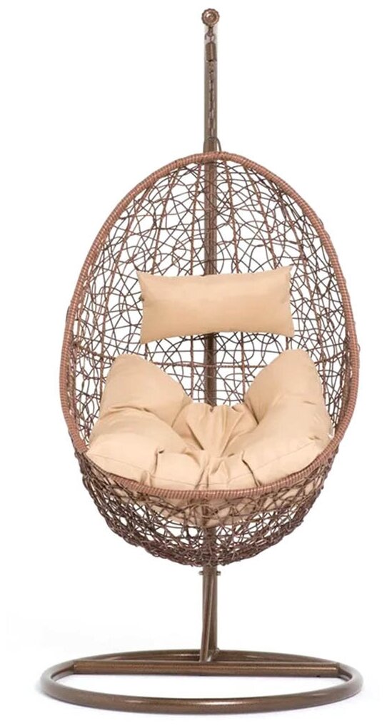 Подвесное кресло 44-004-04 выполнено из высококачественного, утолщенного, искусственного ротанга коричневого цвета. Плетёное кресло 44-004-04 оригинальной формы по достоинству оценят любители комфортного отдыха. Такое садовое кресло, как качели способно приукрасить любой интерьер. Будь оно расположено в доме или на даче, кресло станет любимым для детей и взрослых! Отличное качество и ручная работа делают его плетение прочным и красивым. Конструкция кресла - сборно-разборная, состоит из трех частей: основание, опора и чаша. Сборка не требует специальных навыков и умений.Каркас опоры и чаши выполнен из стали и покрыт прочной, устойчивой к внешним воздействиям, порошковой краской. Стальной каркас данного кресла, благодаря стальной опоре, выдерживает до 150 кг. Искусственный ротанг не требует специального ухода (кроме протирания от пыли). Его можно использовать на открытом пространстве, такое кресло легко выдержит воздействия погодных явлений. Его можно спокойно оставлять на улице даже под сильным дождем. Единственное ограничение для искусственного ротанга — сильный мороз, так как под воздействием холода пластик становится хрупким. Поэтому пользоваться креслом зимой на улице не стоит, на зимний период кресло лучше закрыть от пыли и грязи или можно просто убрать его на хранение в неотапливаемое помещение. Вся мебель уникальна, так как сделана вручную квалифицированными специалистами. В солнечных лучах плетение приобретает более светлый и яркий оттенок.Материал подушек саржа, наполнитель синтепон.Размеры: глубина - 68см, высота - 195см, ширина - 92см.