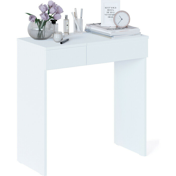 Туалетный стол СП-22 — это стол для макияжа с выдвижным ящиком, откидной крышкой столешницы с зеркалом, и нишей под ней. Место для хранения предназначено для косметики и других важных мелочей. Стол универсальный и подойдет под любые задачи. В сложенном виде может использоваться как письменный стол, стол для ноутбука или детский стол для творчества. Стильная модель подойдёт к любому дизайну квартиры.Характеристики:• Материал: ЛДСП 16 мм, кромка ПВХ 2 мм.• Тип направляющих: роликовые.• Максимальная нагрузка на крышку: 20 кг.• Максимальная нагрузка на ящик: 5 кг.Ориентация сборки: только так, как представлено на изображении.