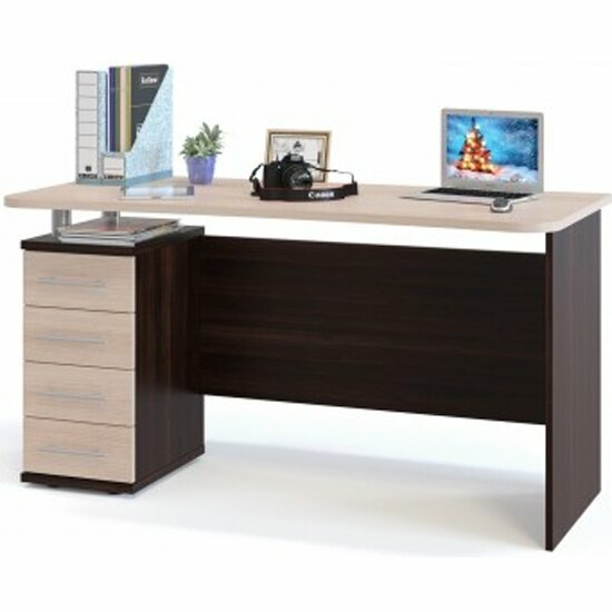Художественное описание товара: Компьютерный стол с тумбой на четыре выдвижных ящика. Благодаря широкой столешнице, стол позволит организовать полноценное и удобное рабочее место.,