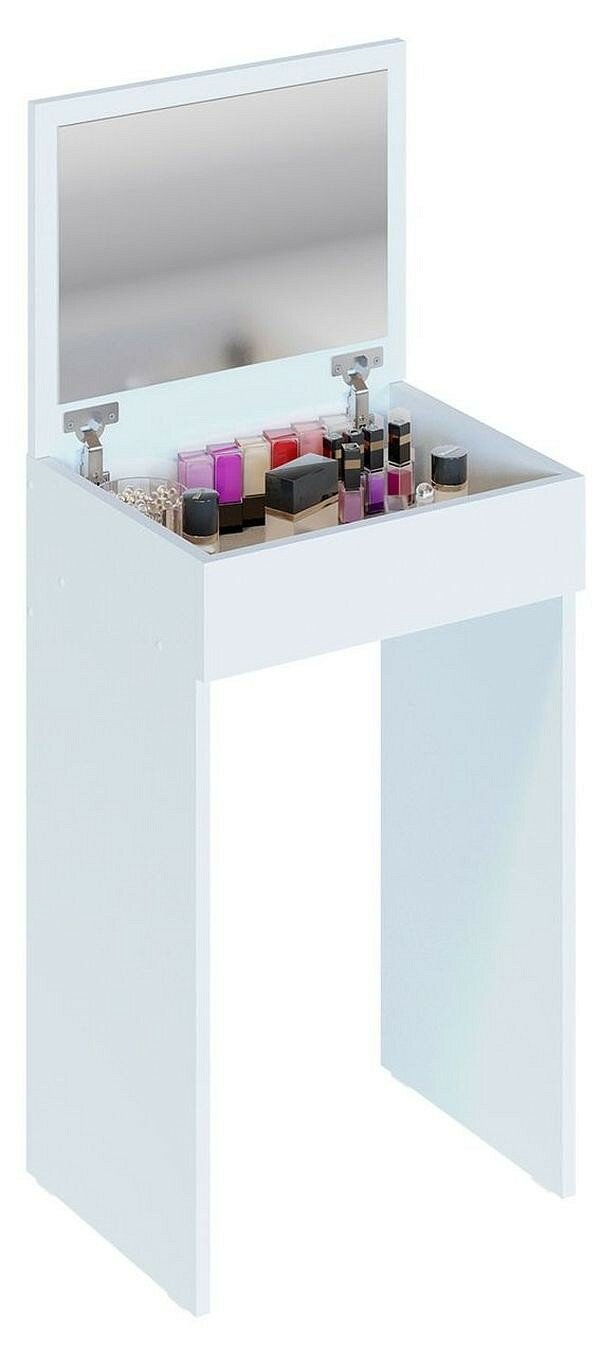 Художественное описание товара: Туалетный стол СП-21 - это компактной стол с откидной столешницей с зеркалом и местом для хранения косметики. Модель многофункциональна и с закрытой столешницей может использоваться как небольшой письменный стол, стол для ноутбука, детский стол или высокая прикроватная тумба в спальне. СП-21 - идеальное решение для небольших помещений.,