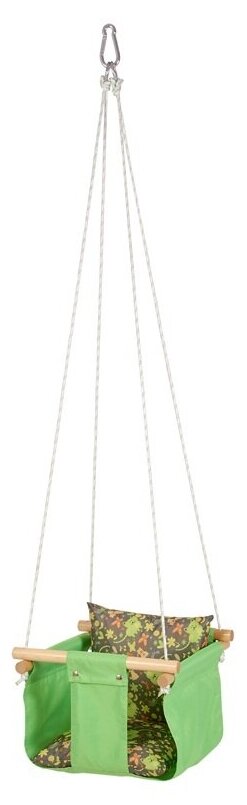 Дополнительные параметры: сидение состоит из мягкой съемной подушки, разделитель для ножек отстегивается, подвесные веревки из 100% хлопка, карабин и кольца идут в комплекте, возрастной диапазон - от 3 до 6 лет, максимально допустимая нагрузка - 35 кг, перекладины - массив березы, длина веревки: 1200 мм,