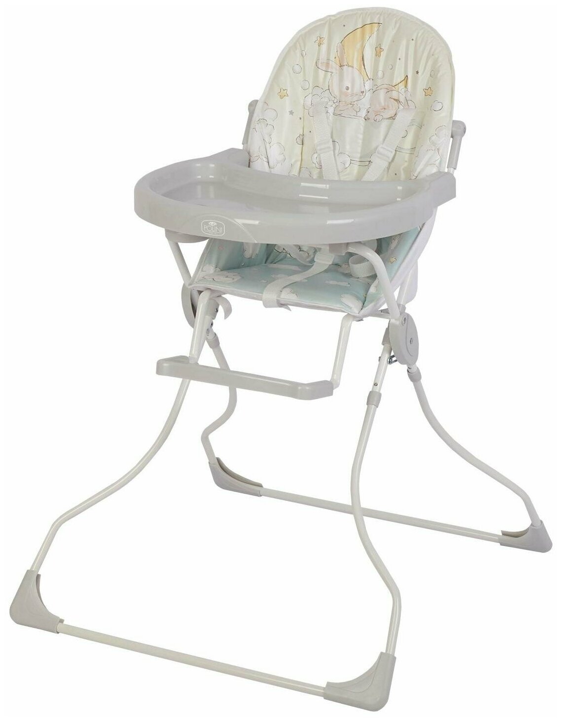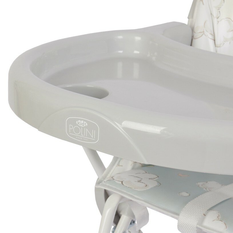 Детский стульчик для кормления Polini 152 Зайки на облачках выполнен по европейским стандартам и предназначен для детей в возрасте от 6 мес. до 3-х лет. Удобное и мягкое сидение изготовлено из легко чистящихся материалов: медицинская клеенка, используемая в роддомах и поликлиниках. Преимущества: материал: медицинская клеенка подставка для ног 5-ти точечные ремни безопасности складной столик с углублениями для посуды устойчивая конструкция. Пятиточечные ремни гарантируют безопасность малыша и могут регулироваться по длине по мере роста ребенка. В сложенном виде стоит без опоры, компактные размеры облегчают хранение и транспортировку. Габариты изделия: (ДхШхВ) 72×73,5×100,5 см. Характеристики Цвет серый Регулировка положения спинки не регулируется спинка Съемный поднос не съемный поднос Съемный столик не съемный столик Подставка для ног с подставкой Регулировка высоты сидения не регулируется высота Регулировка ремней c регулировкой ремней Материал пластик Ширина, см 74 Тип складной Возрастной диапазон от 6 месяцев до 3 лет Ремень безопасности пятиточечный Материал сидения пленка ПВХ