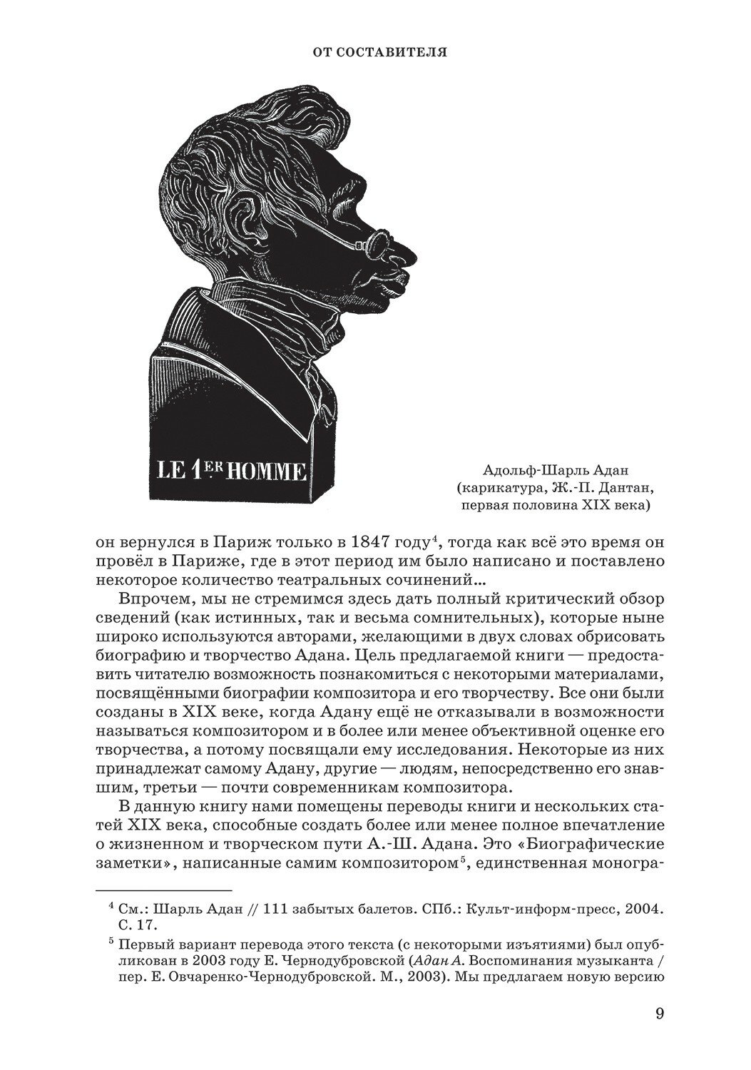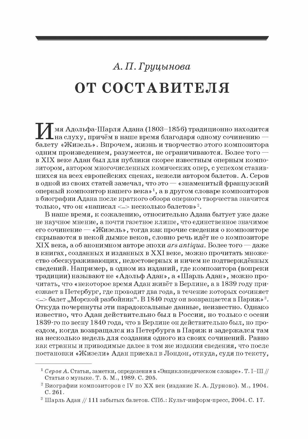 The current book presents studies and articles devoted to life and work of the composer Adolphe Charles Adam (1803–1856). A musician, educator, author and even theatre manager, Adam nowadays is known only as a composer of romantic ballets, while in 19th century he was known rather as the author of numerous operas. For the first time in Russian there are a number of materials offered to a reader, which were written in 19th century and devoted to this composer’s work. Among them is the only monograph about the composer by A.?Pougin, and also the research study devoted to his ballets, the part of his work that brought him fame.