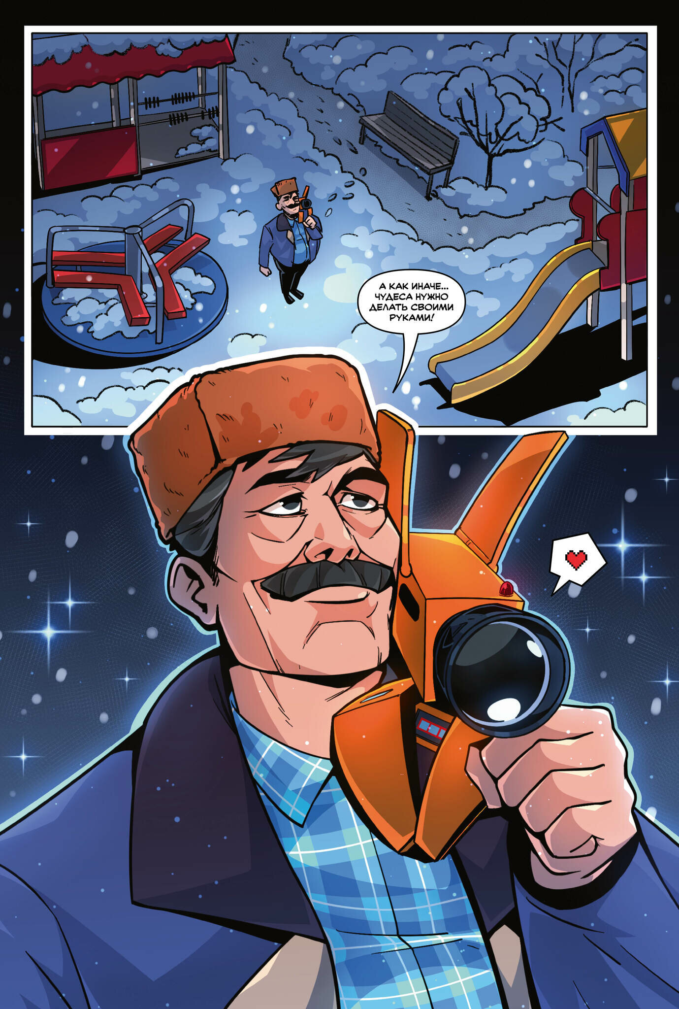 Одна девочка очень хотела получить в подарок от Деда Мороза котёнка, но вот беда — у неё аллергия на кошек. Хорошо, что об этом узнал гениальный инженер Иваныч, который уже как-то сделал неугомонного робота-щенка Тишку для своей жены. Теперь Иванычу настало время сотворить новое… новогоднее чудо. Тёплый и добрый комикс для всей семьи полон весёлых приключений, настоящих героев и рукотворного волшебства.