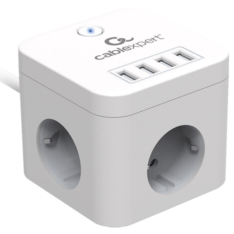 Сетевой фильтр Cablexpert Cube 3р 10А 4хUSB 1.5м ур.защиты 4+ белый CUBE-3-U4-W-1.5
