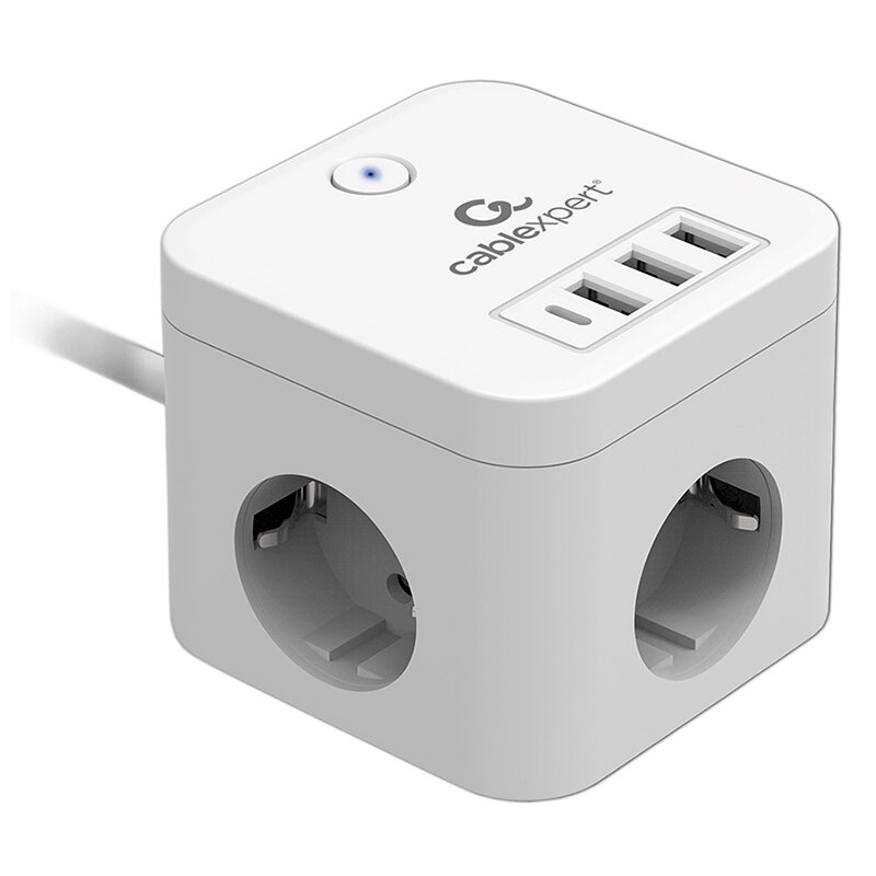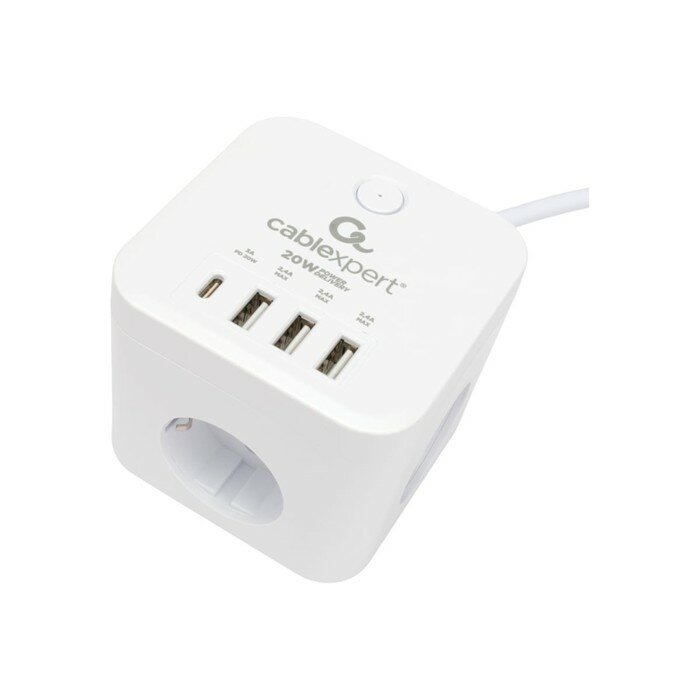 Сетевой фильтр Cablexpert Cube 3р 10А 1xType-C PD 3xUSB 1.5м ур.защиты 4+ белый CUBE-3-CU3-W-1.5