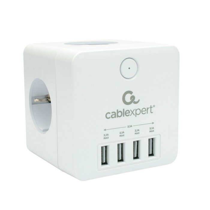 Сетевой фильтр Cablexpert Cube 4р 16А 4хUSB ур.защиты 2+ белый CUBE-4-U4-W