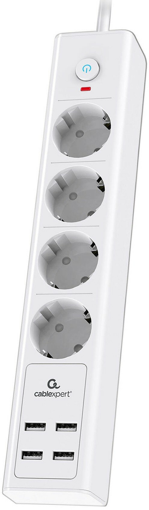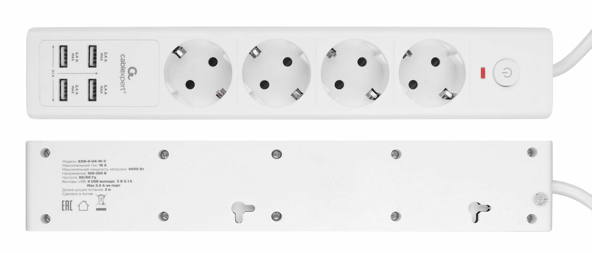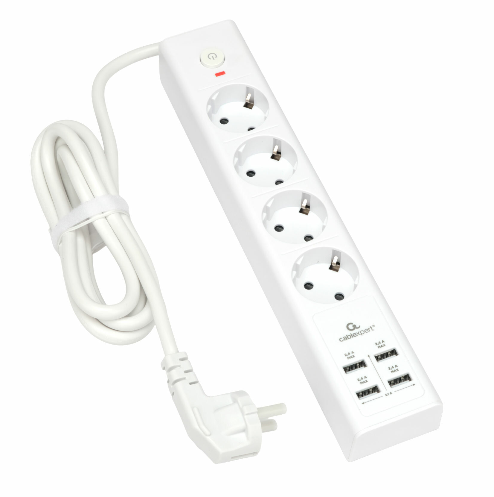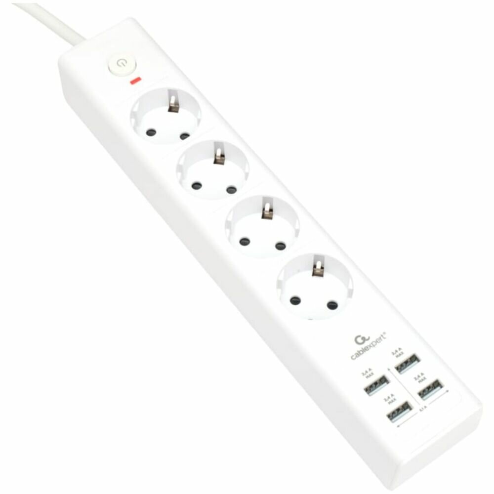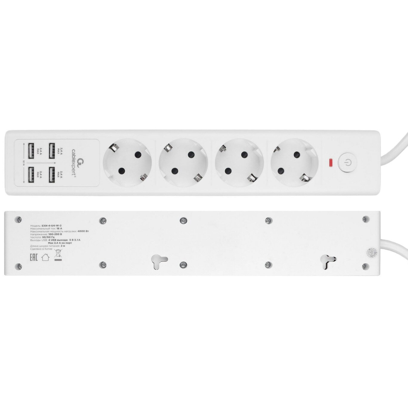 Сетевой фильтр Cablexpert Exnovo 4р 16А 4хUSB 3.4A 2м ур.защиты 4+ белый EXN-4-U4-W-2
