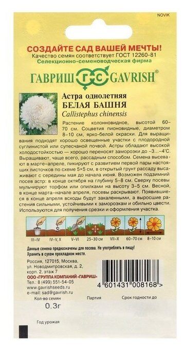Семена цветов Гавриш астра Белая башня