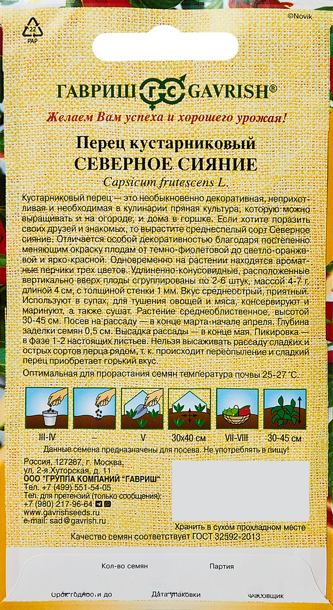Сервис сравнения цен СкидкаГИД предлагает сравнить цены на товар «Семена овощей Гавриш перец кустарный Северное сияние 5 шт.»