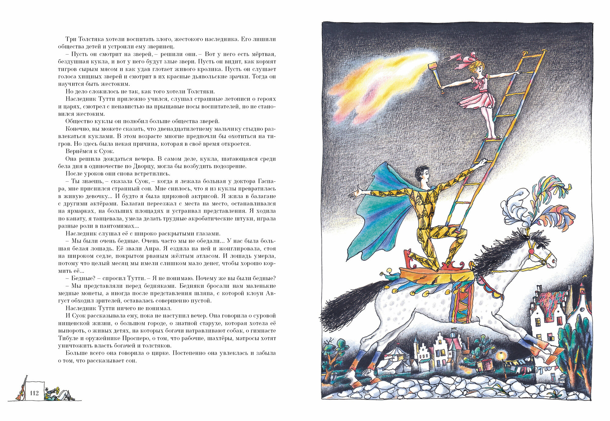 Приключения героев сказки - бесстрашного канатоходца Тибула, маленькой танцовщицы по имени Суок, мужественного оружейника Просперо и доброго доктора Гаспара Арнери - волнуют сердца многих поколений читателей. Отчаянные подвиги героев романа, их смелость, честность и верность дружбе помогли народу свергнуть деспотичную власть Трёх Толстяков, а добру и справедливости - восторжествовать над обманом и бессердечием.