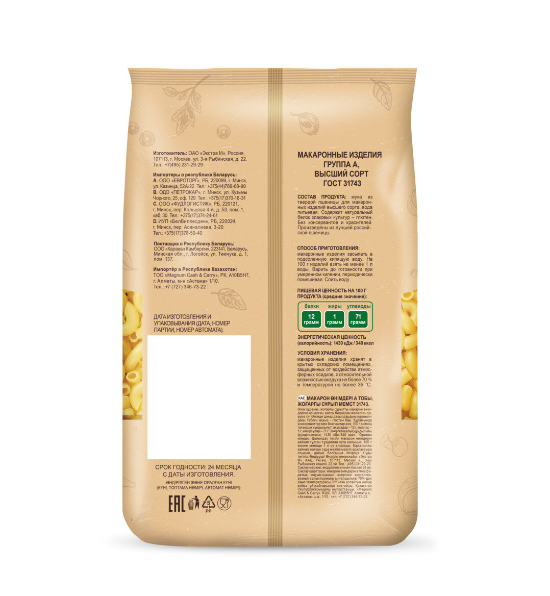 | Тип товара | Макароны |