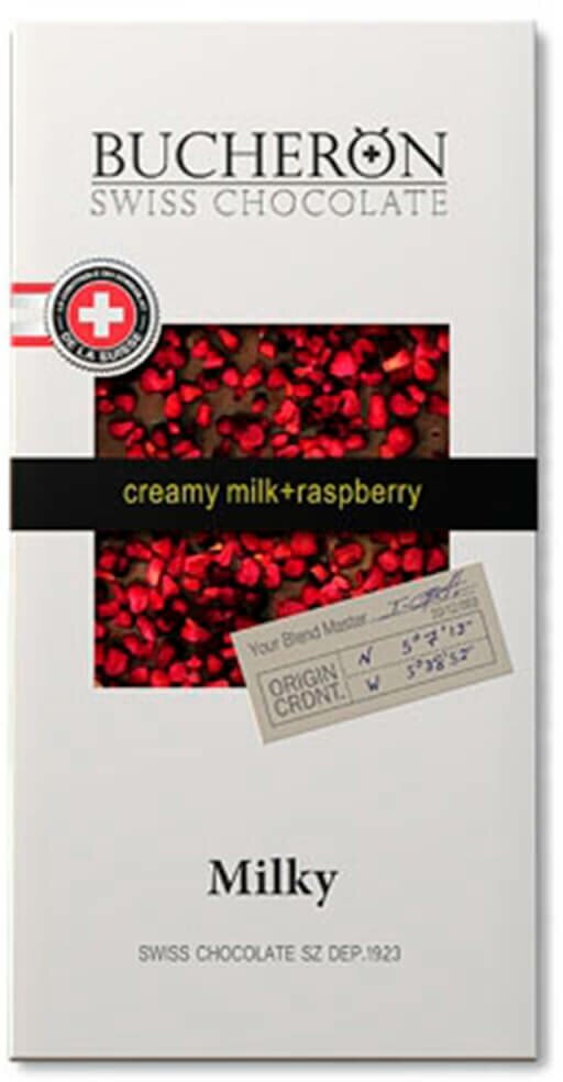 Шоколад молочный BUCHERON с кусочками малины 100 г