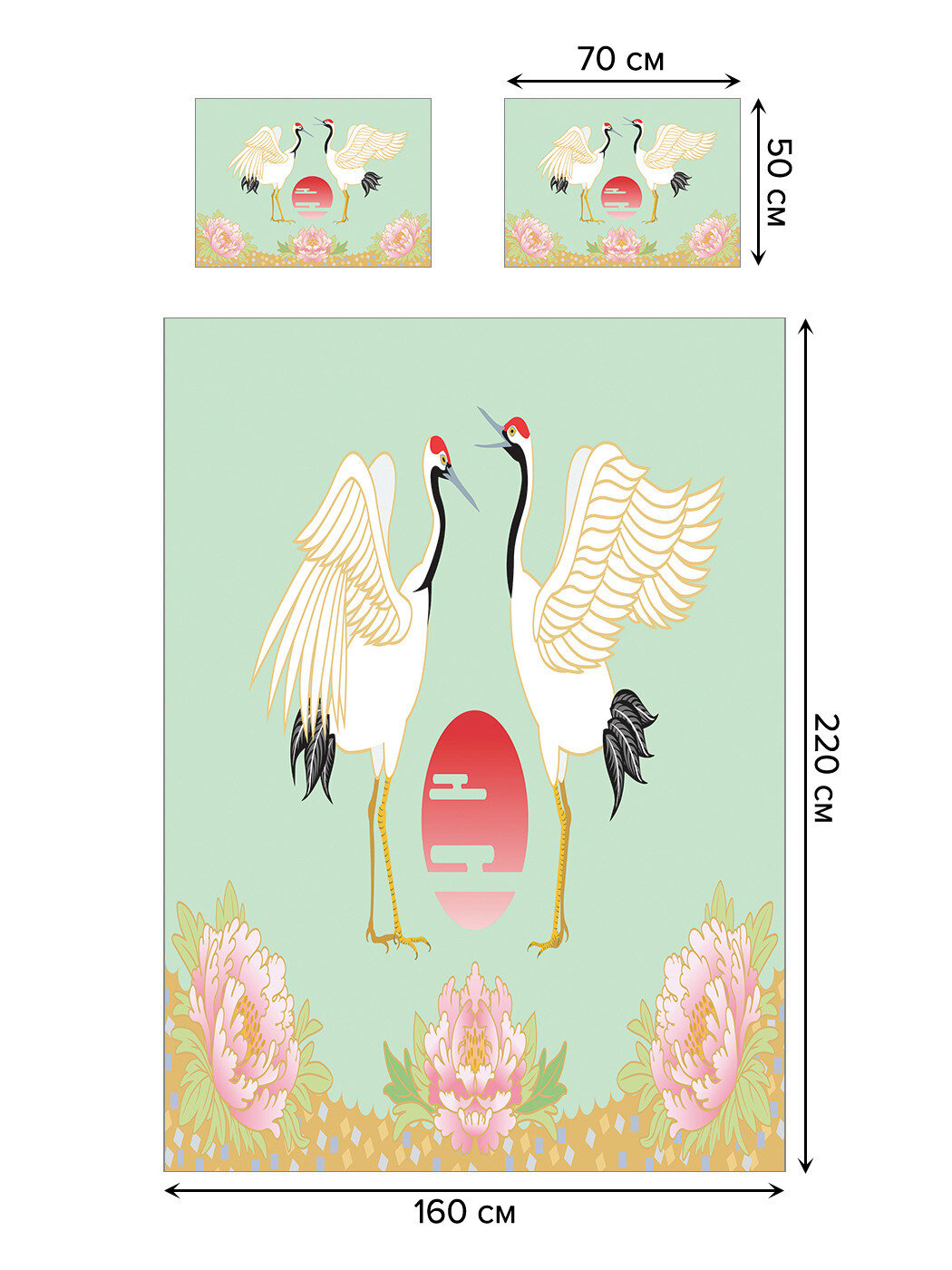 Модель: Покрывало на 1.5-спальную кровать Японский журавль 220х160 и две наволочки 70x50