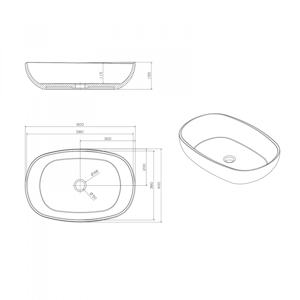 Array форма раковины Abber Kristall оптимальных размеров: шириной 60 см, глубиной 40 см, высотой 15.5 см, способствует комфорту использования и монтажа. Современный стиль, в котором выполнена раковина Abber AT2805Vesuvian передается во всех элементах данной модели. Материалом, из которого произведена раковина AT2805Vesuvian является полиэфирная смола, данный материал отличается максимально гладкой поверхностью, и абсолютной гигиениченостью.