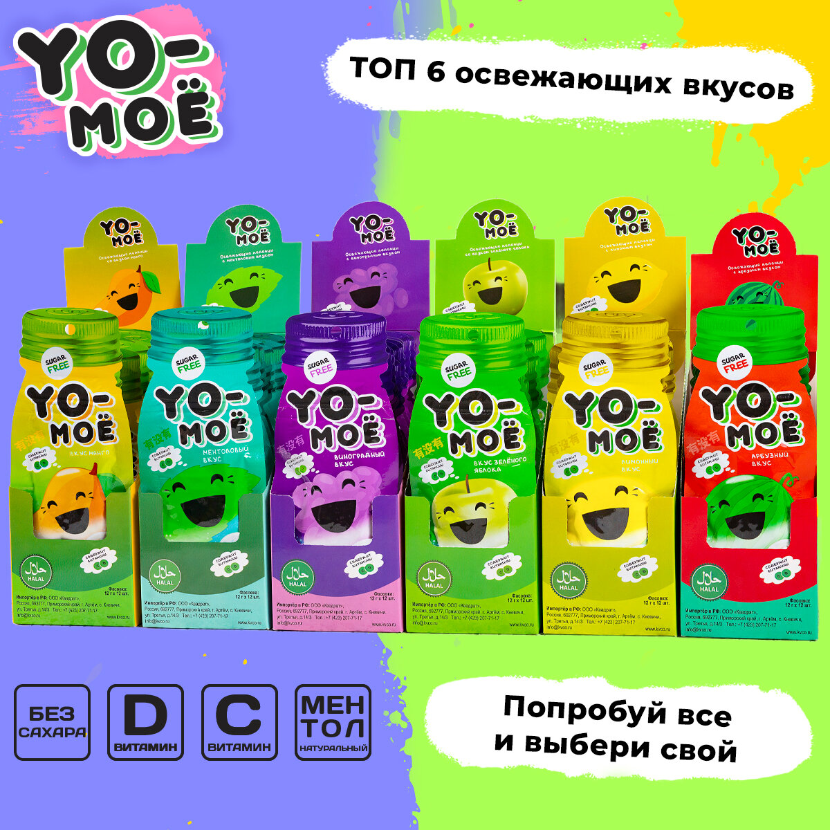 Леденцы Yo-Моё зеленое яблоко - это освежающие леденцы с ярким и сочным вкусом зеленого яблока.