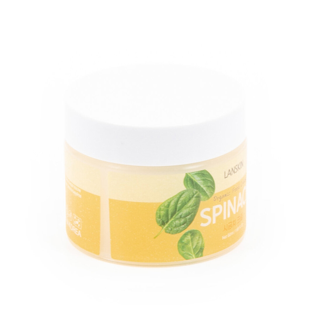 Крем с экстрактом шпината глубоко питает кожу витаминами и жирными кислотами, способствует сохранению влаги в коже, способствует снятию раздражения и придает ей гладкость. Шпинат это природный источник витамина А, С и растительных протеинов. Его применение незаменимо при детоксикации кожных покровов и для сужения пор. Благодаря содержанию гиалуроновой кислоты и экстрактов бурых водорослей крем замедляет старение и глубоко увлажняет. Не содержит парабенов.