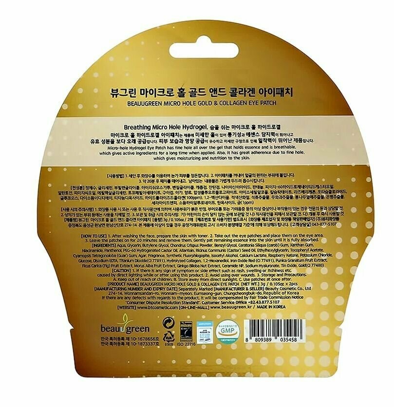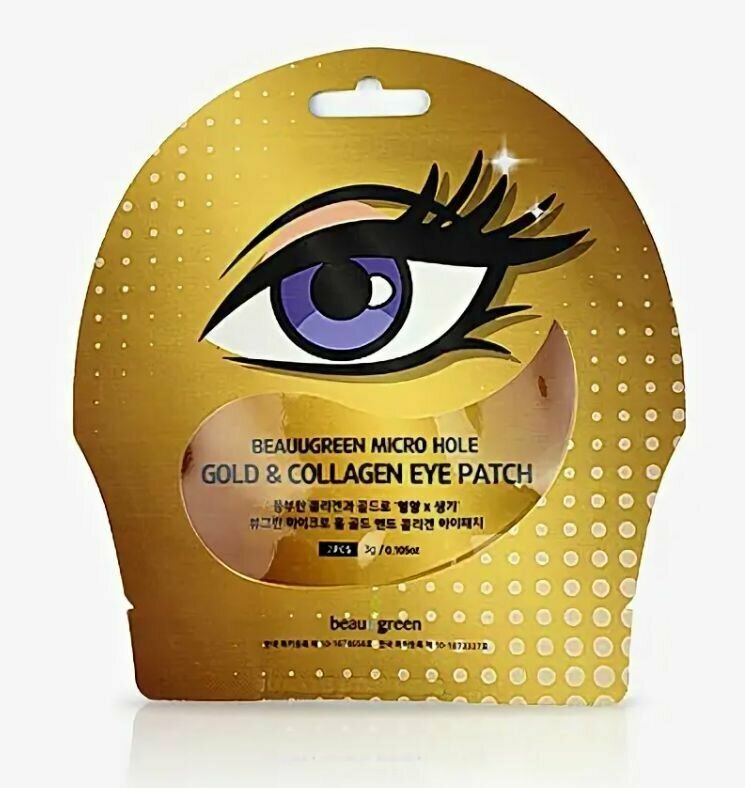 Beauugreen Micro Hole Gold Hydrogel Mask Омолаживающая гидрогелевая маска для лица поможет преобразить возрастную, уставшую и сухую кожу, которая потеряла свой молодой и свежий вид. Маска плотно прилегает к лицу, создаёт все необходимые условия для более глубокого проникновения полезных компонентов из эссенции, позволяет коже дышать. Золото оказывает легкое противовоспалительное действие, подпитывает клетки ценными микроэлементами, усиливает воздействие других омолаживающих компонентов, борется с возрастными изменениями кожного покрова. Применение: Извлечь маску из упаковки, снять защитный слой, наложить на лицо по шаблону и оставить на 40 минут, снять. Остатки эссенции вмассировать в кожу.