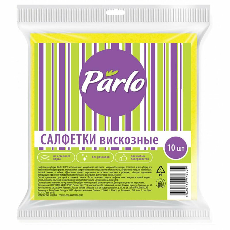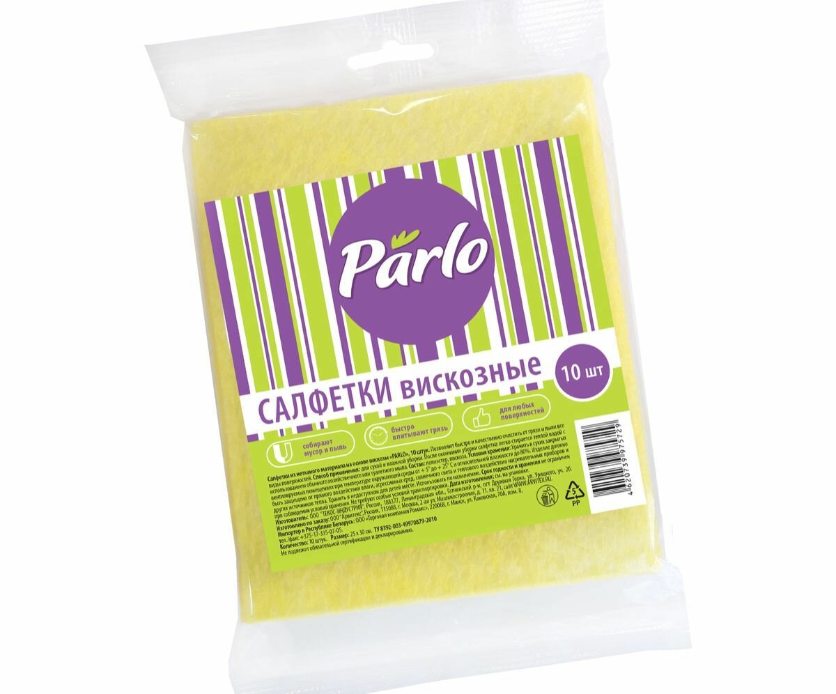 Салфетки из нетканого материала на основе вискозы PARLO, 10 штук. Позволяют быстро и качественно очистить от грязи и пыли все виды поверхностей. Способ применения: для сухой и влажной уборки.