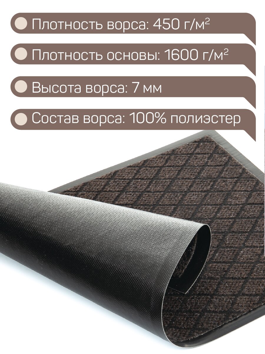 Коврик придверный влаговпитывающий 40х60 см 'Галант' коричневый - это очень удобный и практичный предмет для использования в доме, на даче и в других местах. Он предназначен для размещения перед входом в помещение или просто внутри помещения, где может накапливаться влага, грязь и пыль. Коврик изготовлен из качественных материалов, которые обеспечивают высокую степень влаговпитываемости. Он быстро пропускает воду и засасывает грязь, что позволяет сохранять чистоту и порядок в доме. Коврик придверный 'Галант' имеет размеры 40х60 см, что достаточно для того, чтобы он мог уместиться в любом коридоре, гардеробной или на входе в баню. Он не только защищает пол от появления грязи и пыли, но и предотвращает скольжение на мокром полу, что делает его безопасным для использования в условиях высокой влажности. Использование коврика придверного 'Галант' на даче или в загородном доме также будет очень удобным. Он поможет сохранить чистоту в доме и защитить его от грязи и пыли, которые могут принести с собой посетители. К тому же, коричневый цвет легко сочетается с любым интерьером и декором. необходимый предмет для обеспечения чистоты и порядка в вашем доме или на даче. Он подходит для использования в коридоре, гардеробной, ванной комнате, бане и других местах, где нужно защитить пол от грязи и пыли.