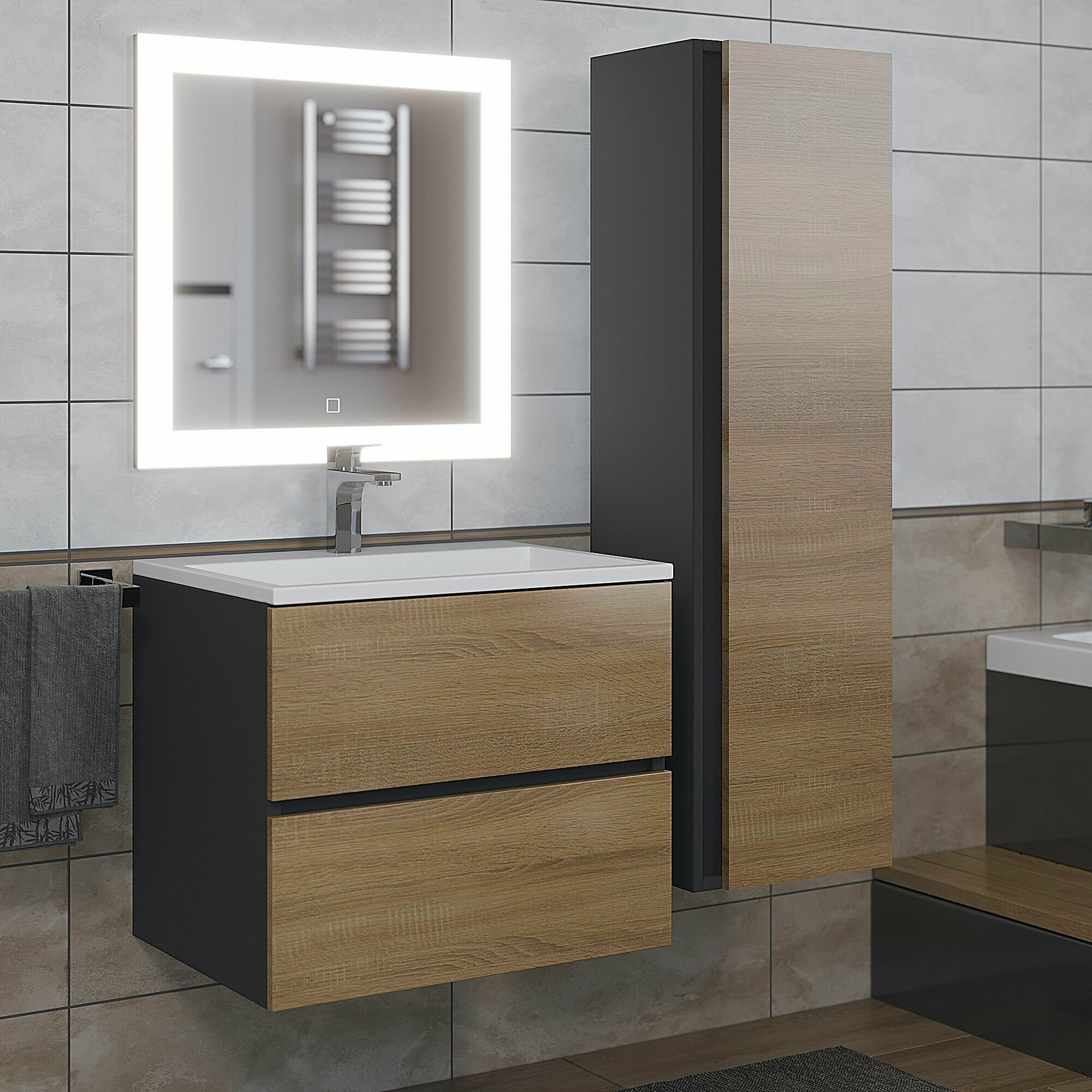 Тумба под раковину Uperwood Barsa 60 см 2930205257 черный, дуб сонома