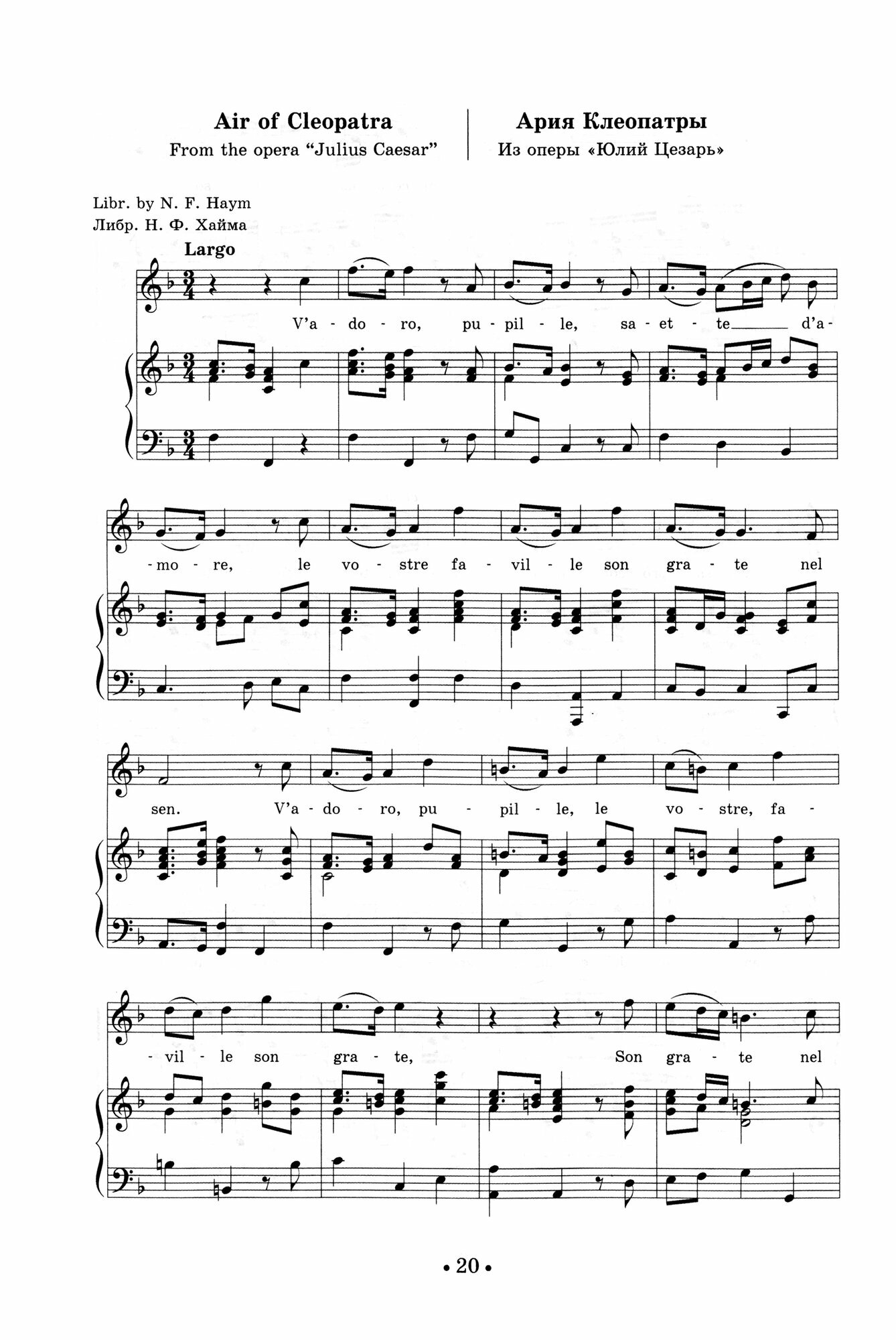 Георг Фридрих Гендель (1685-1759) вошел в историю музыки в первую очередь как автор многочисленных опер и ораторий. Общее количество арий в наследии композитора насчитывает более тысячи. В издание вошли арии из опер «Ринальдо», «Юстиниан» «Юлий Цезарь», «Партенопа», «Альцина», «Роделинда», «Ксеркс», «Эцио», ораторий «Иисус Навин», «Семела», «Сусанна». Сборник адресован студентам музыкальных училищ и вузов, профессиональным исполнителям.