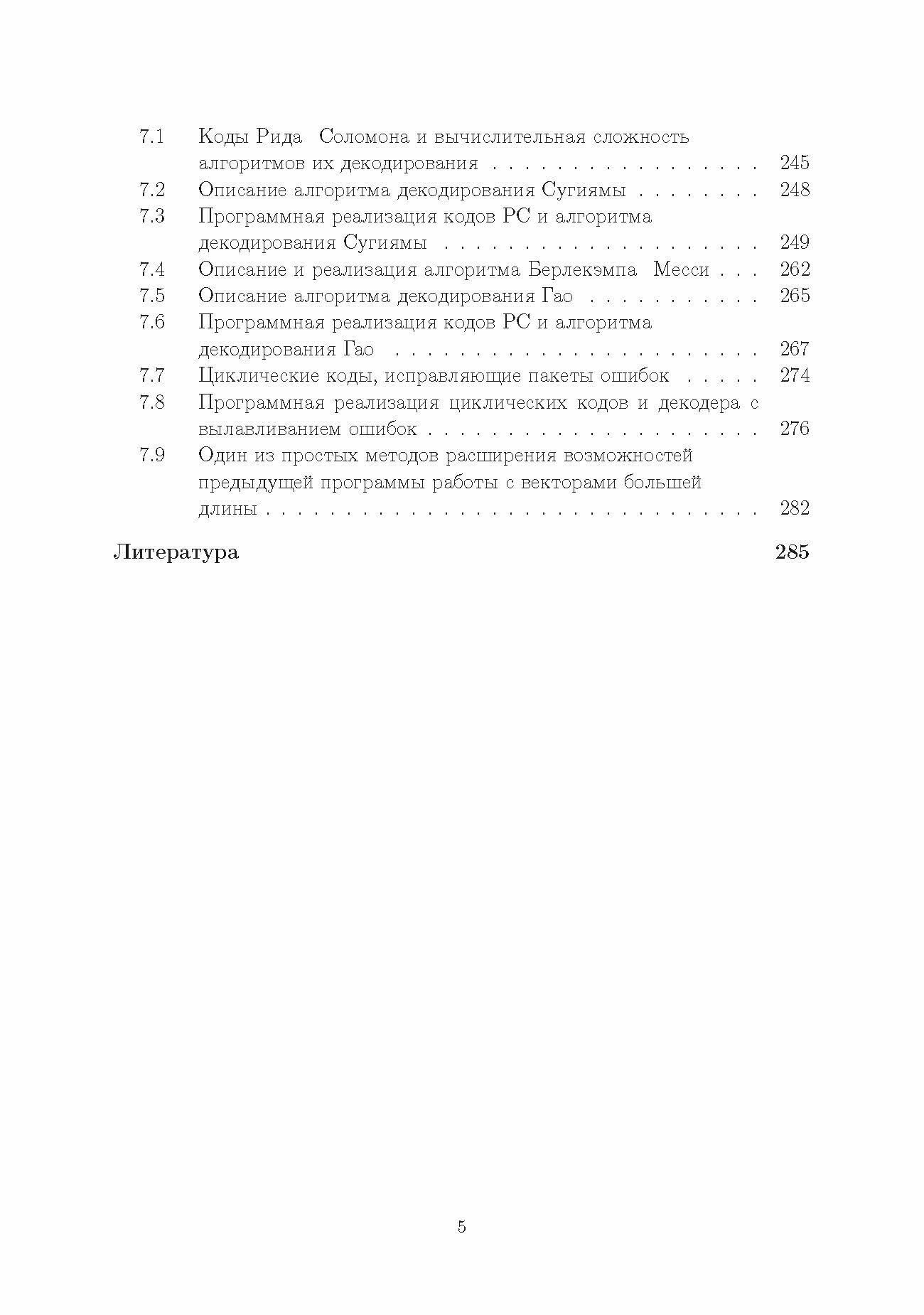 схема разделения секрета Шамира над конечным полем характеристики два, схема на основе равновесных двоичных кодов, схема Ито - Саито - Нишизеки, коды Рида - Соломона над полем характеристики два, алгоритмы декодирования кодов Рида - Соломона на основе метода Сугиямы, метода Берлекэмпа -- Месси и алгоритма Гао, циклические коды, декодер с вылавливанием пакетов ошибок.