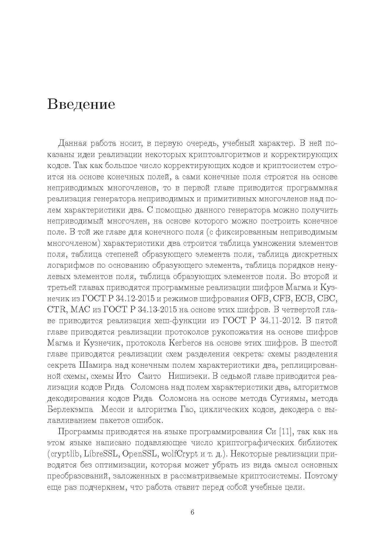 В учебном пособии приводятся программные реализации следующих объектов: генератор неприводимых и примитивных многочленов над полем характеристики два, конечные поля характеристики два, шифры Магма и Кузнечик из ГОСТ Р 34.12-2015,