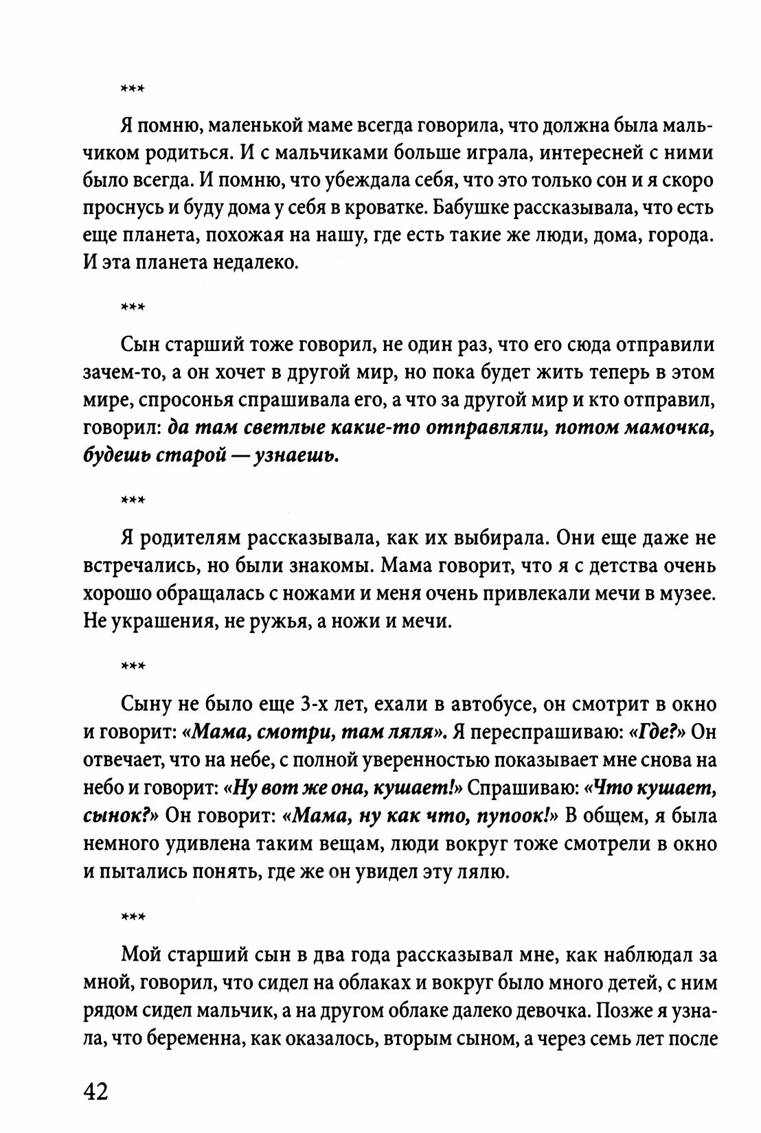 В книге психолога, регрессолога, члена Ассоциации специалистов и исследователей в области глубинной памяти и регрессий А. Лисицыной впервые в отечественной литературе исследован феномен воспоминаний детьми своих прошлых жизней.