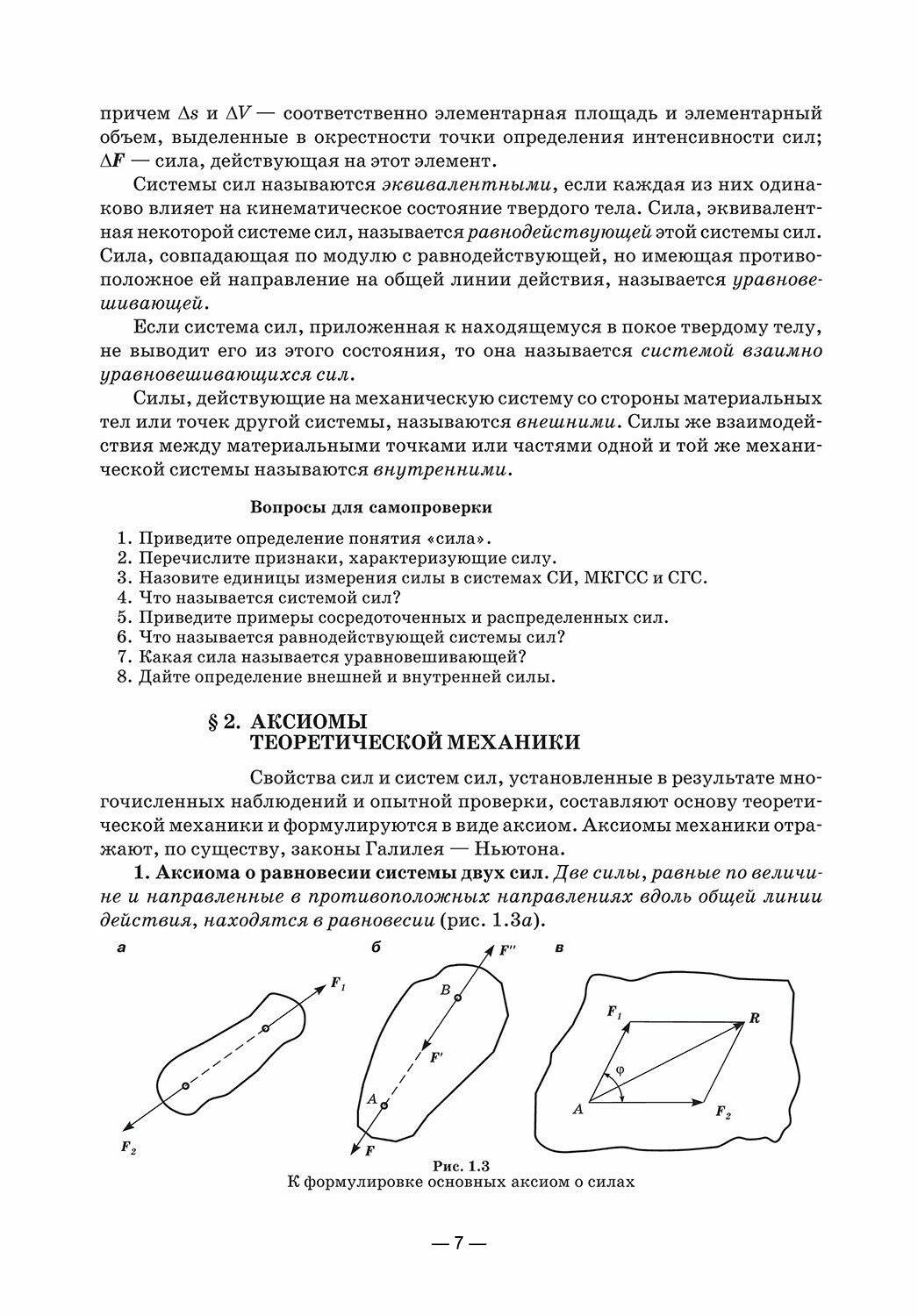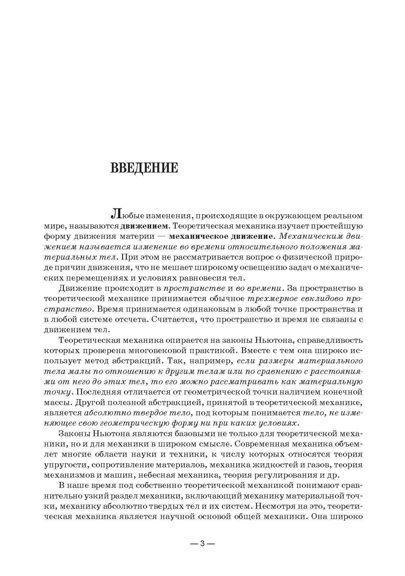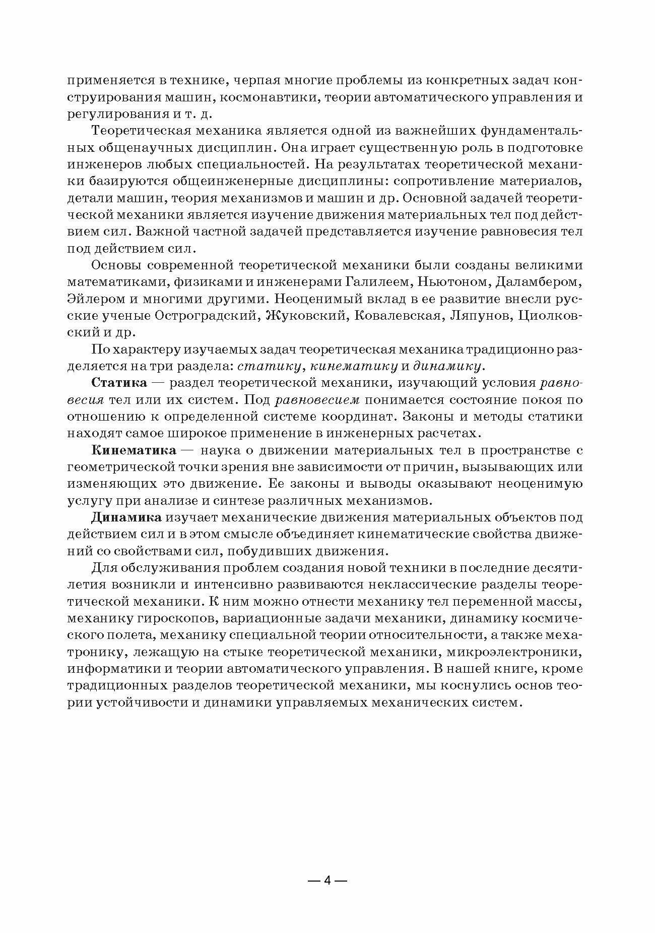В доступной форме изложены основы теоретической механики. Рассмотрение теоретических положений сопровождается пояснениями и примерами. Дано подробное решение типовых задач с рекомендациями методического характера. По каждой теме даны вопросы для самопроверки усвоения материала. В пособии не рассматриваются такие утилитарные разделы, как графостатика, простейшие механизмы и другие, зато дано изложение исследования устойчивости механических систем по Четаеву — Ляпунову и начал динамики управляемых систем. Приведены примеры использования компьютерных приложений в инженерных расчетах (Delphi, APM WinMashine, COSMOSWorks и др.). Малый объем этого материала отражает авторский взгляд на подобные приложения как на весьма полезный инструмент, который, однако, не может заменить фундаментальных теоретических знаний механики.