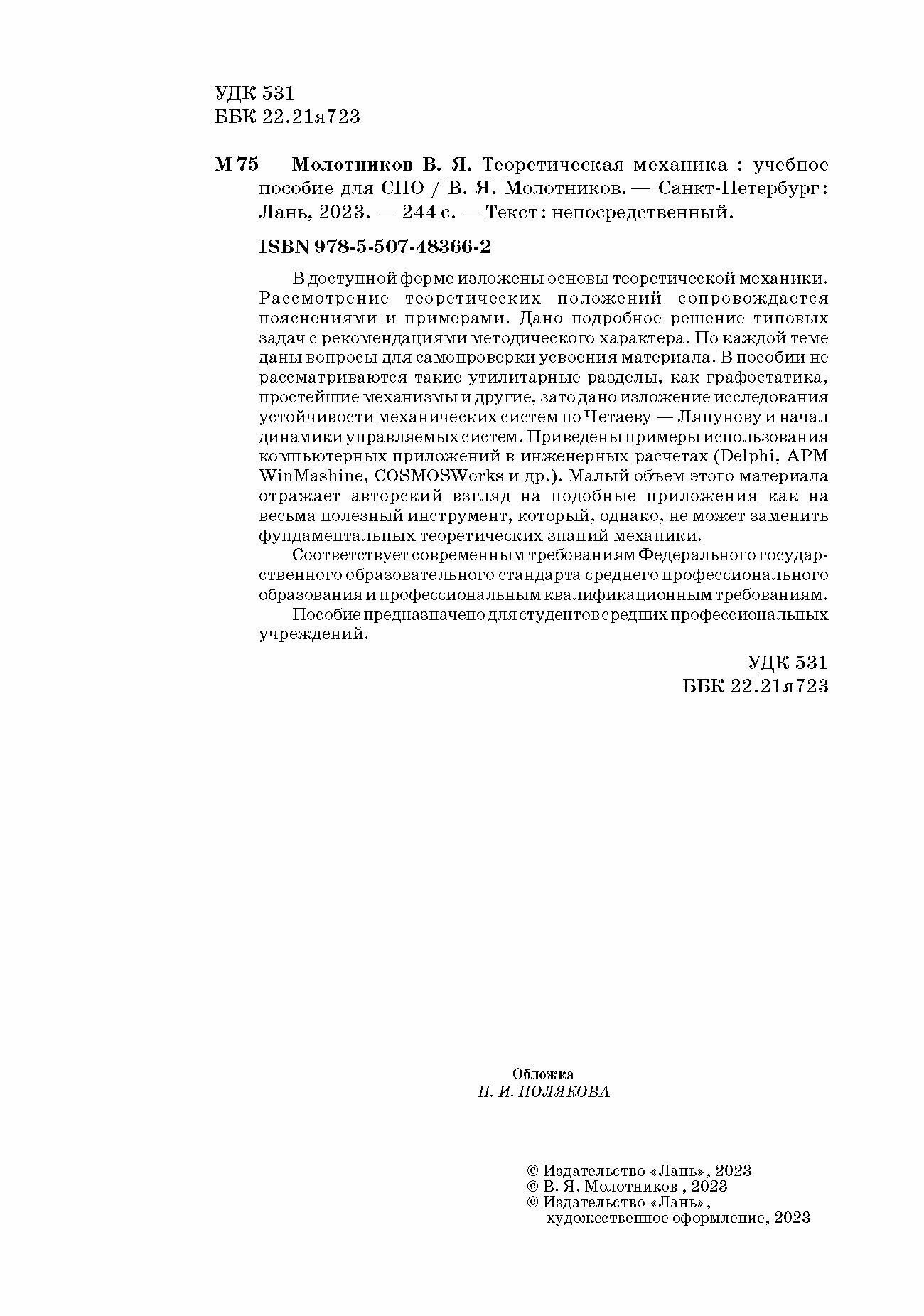 Теоретическая механика. Учебное пособие (В. Я. Молотников); Издательство ЛАНЬ, 2023