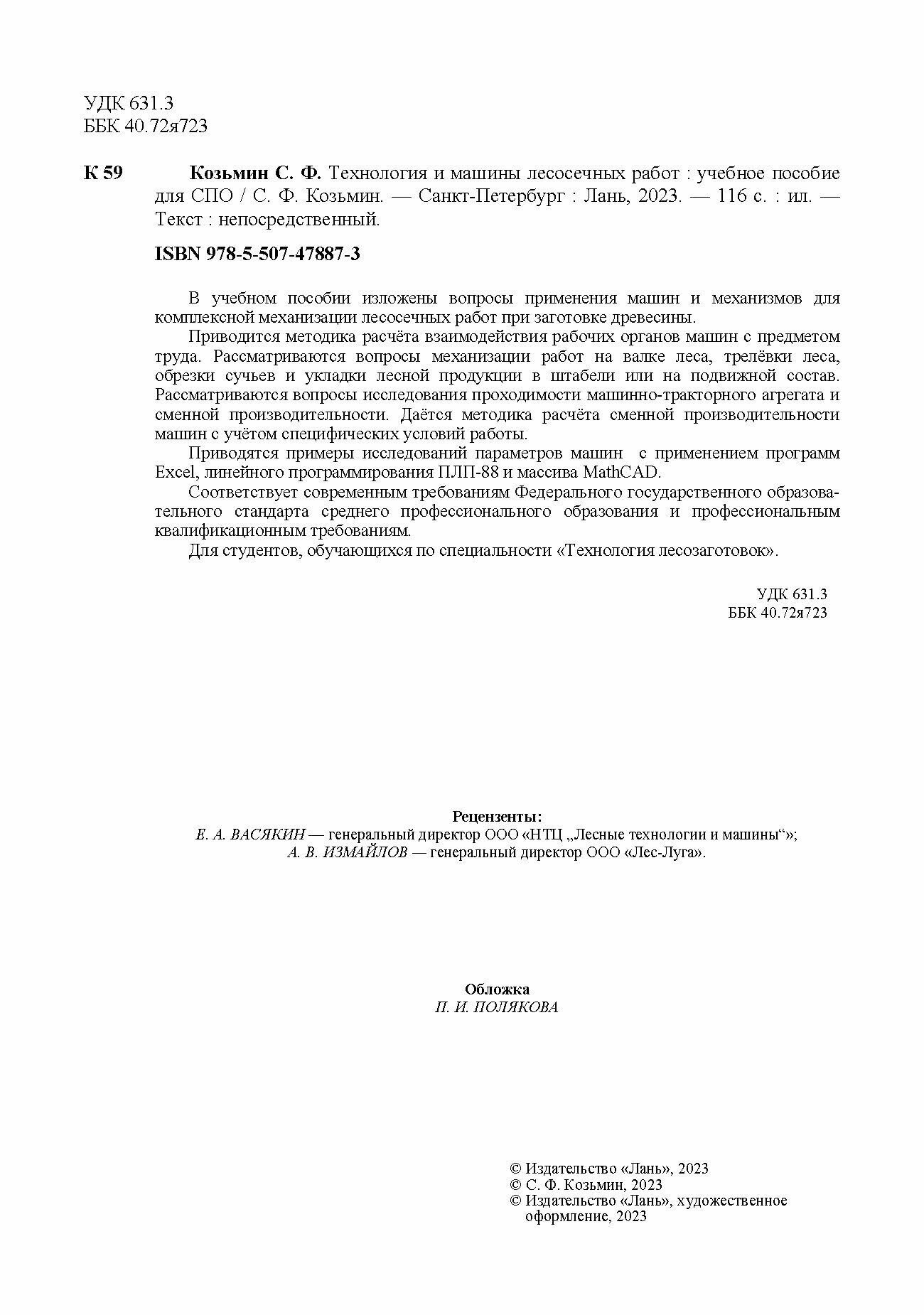 Технология и машины лесосечных работ. СПО (С. Ф. Козьмин); Издательство ЛАНЬ, 2023
