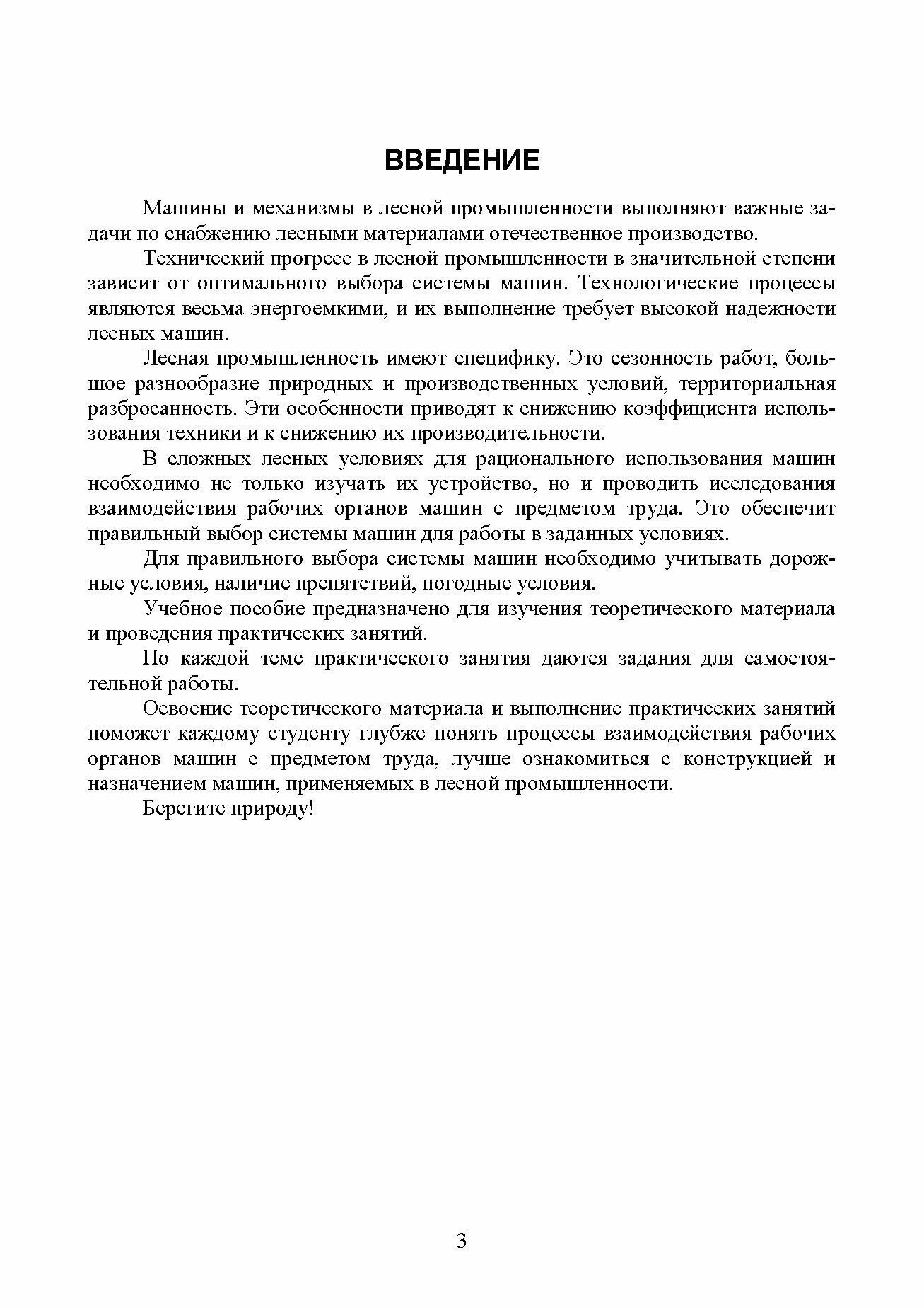 Приводится методика расчёта взаимодействия рабочих органов машин с предметом труда. Рассматриваются вопросы механизации работ на валке леса, трелёвки леса, обрезки сучьев и укладки лесной продукции в штабели или на подвижной состав. Рассматриваются вопросы исследования проходимости машинно-тракторного агрегата и сменной производительности. Даётся методика расчёта сменной производительности машин с учётом специфических условий работы.