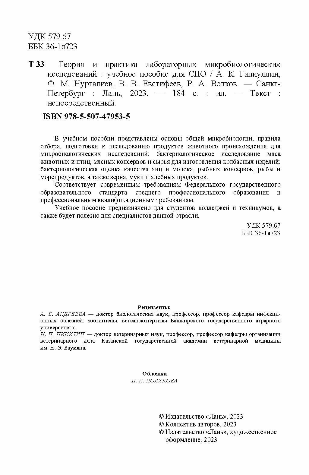 Теория и практика лабораторных микробиологических исследований. Учебное пособие (Галиуллин Альберт Камилович, Нургалиев Фарит Муллагалиевич, Евстифеев Виталий Валерьевич); Лань, 2023