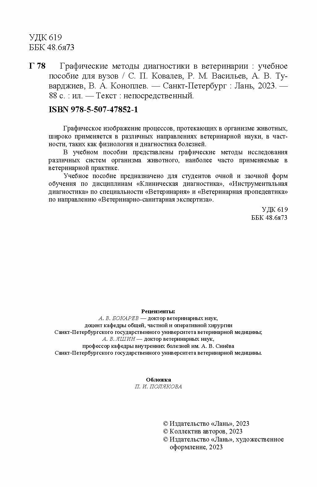 Графические методы диагностики в ветеринарии. Учебное пособие (Васильев Роман Михайлович, Ковалев Сергей Павлович, Туварджиев Андрей Викторович); Лань, 2023