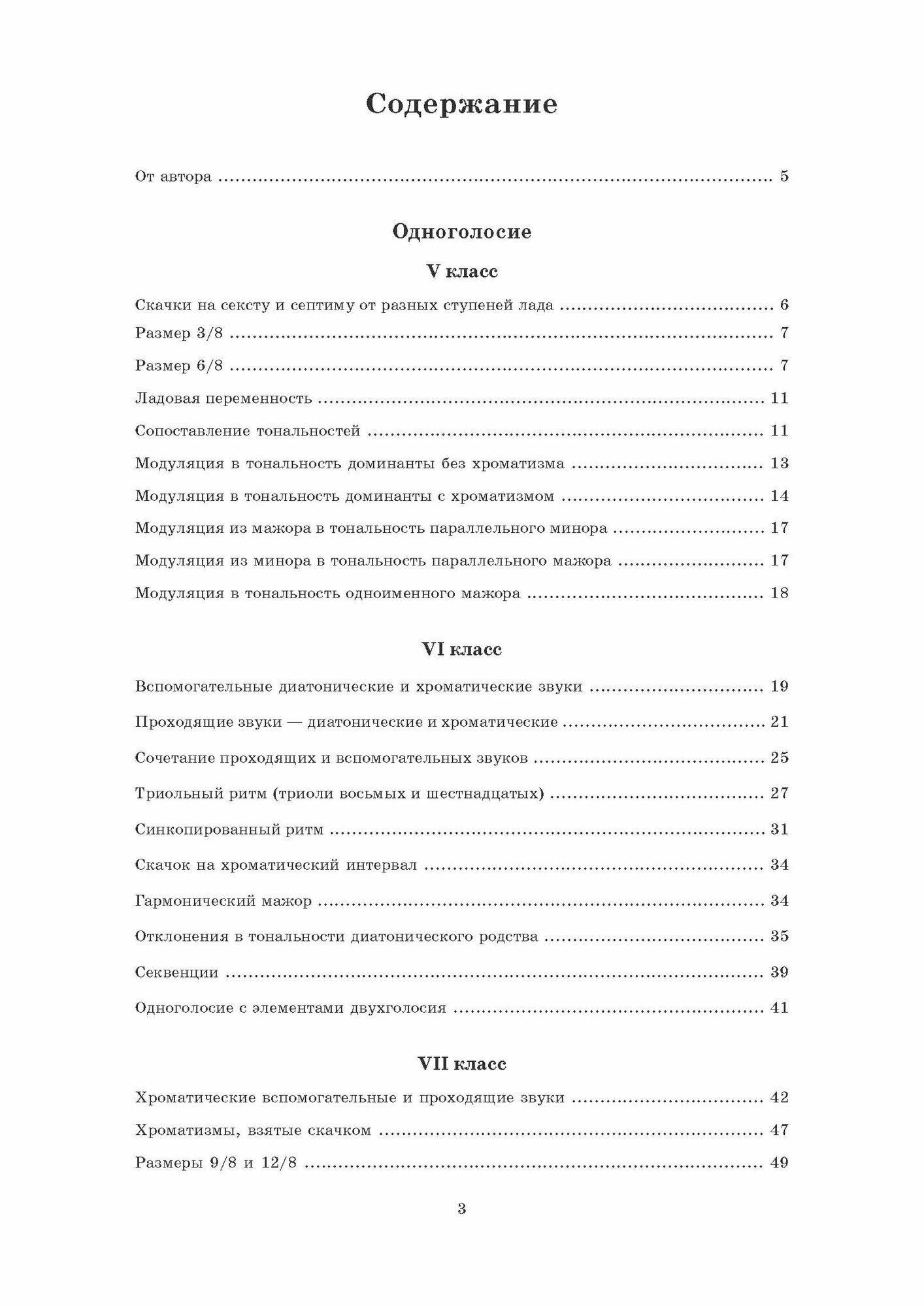 Сборник диктантов составлен на основе музыки композиторов разных стилей и эпох — начиная с эпохи барокко и включая двадцатый век. Материал делится на две части: одноголосные диктанты и двухголосные диктанты. Внутри каждого раздела музыкальный материал расположен по мере возрастания трудности, как и полагается по методике диктанта.