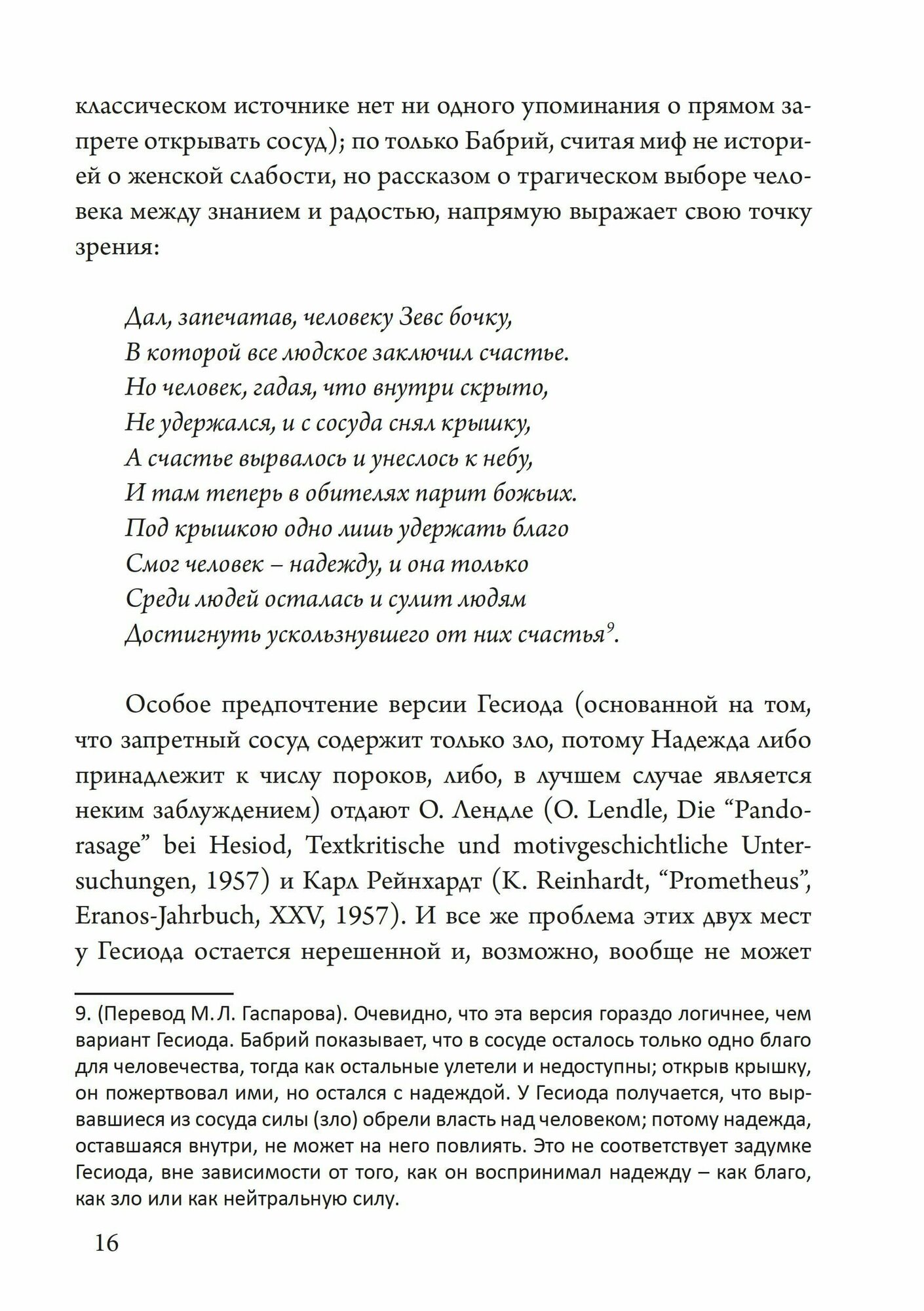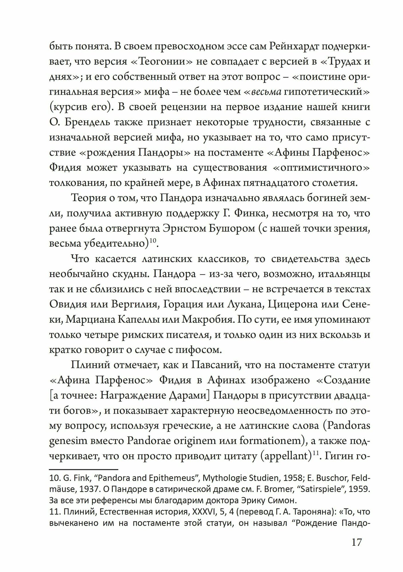 Блестящий знаток и историк эпох Эрвин Панофски редко рассматривает частности, позволяя читателю ощутить ход времени. Но в этой книге, написанной в соавторстве с женой, Дорой Панофски, он сосредотачивается на мифе о Пандоре, загадочной истории с множеством вариаций. Он предлагает нам не только ознакомиться с изменениями этого образа в изобразительном искусстве и литературе на протяжении трёх тысячелетий, но и прочувствовать поэтическую и философскую подоплеку этого процесса.