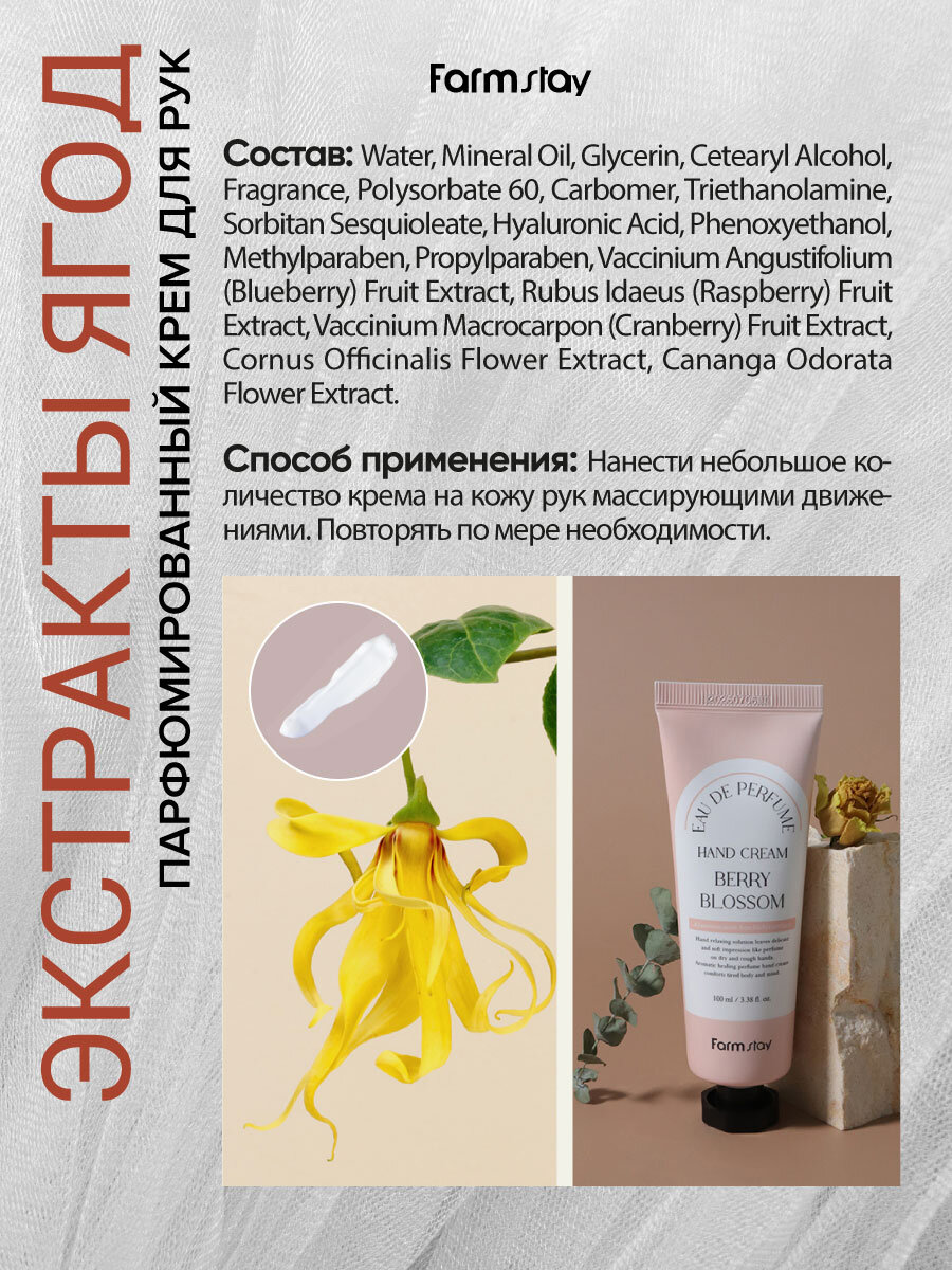 FARMSTAY Крем парфюмированный для рук с экстрактами ягод / EAU DE PERFUME HAND CREAM BERRY BLOSSOM 100 мл (8809884511204)
