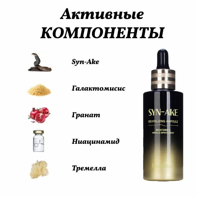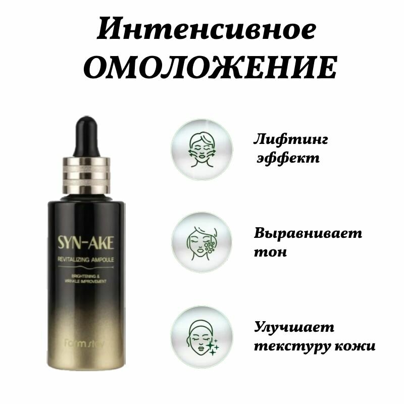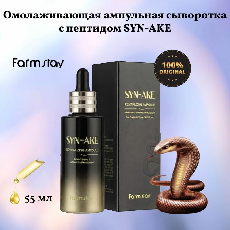 FARMSTAY Сыворотка для лица со змеиным пептидом / SYN-AKE REVITALIZING AMPOULE 55 мл (8809674691666)