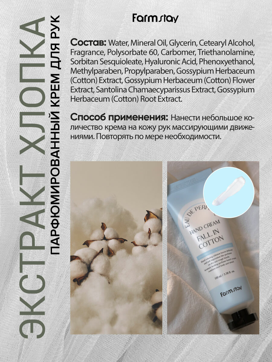 FARMSTAY Крем парфюмированный для рук с экстрактом хлопка / EAU DE PERFUME HAND CREAM FALL IN COTTON 100 мл (8809884511235)