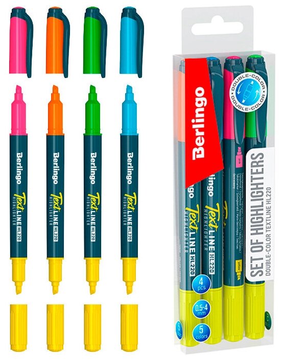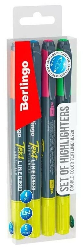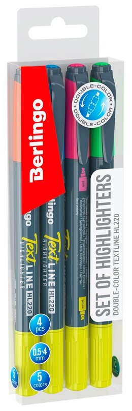 Набор текстовыделителей двусторонних Berlingo "Textline HL220" 4 шт 5 цв. 05-4 мм европодвес (T2020)
