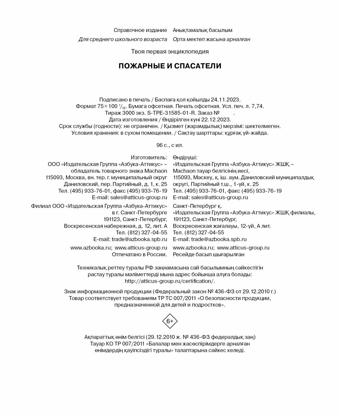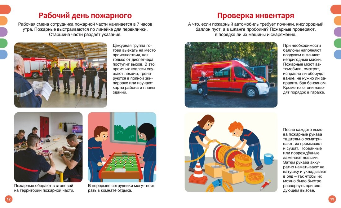 Эта книга расскажет о работе пожарных и спасателей. Юные читатели узнают, как устроена пожарная часть, какое снаряжение и оборудование используют спасатели, для чего нужен тот или иной пожарный автомобиль, а также понаблюдают за действиями спасателей при лесных пожарах, наводнениях и землетрясениях. В книгах серии – только самая актуальная информация и самые современные иллюстрации! И это ещё не всё: в конце каждой книжки собраны увлекательные задания и игры, которые помогут весело провести время и повторить изученное.