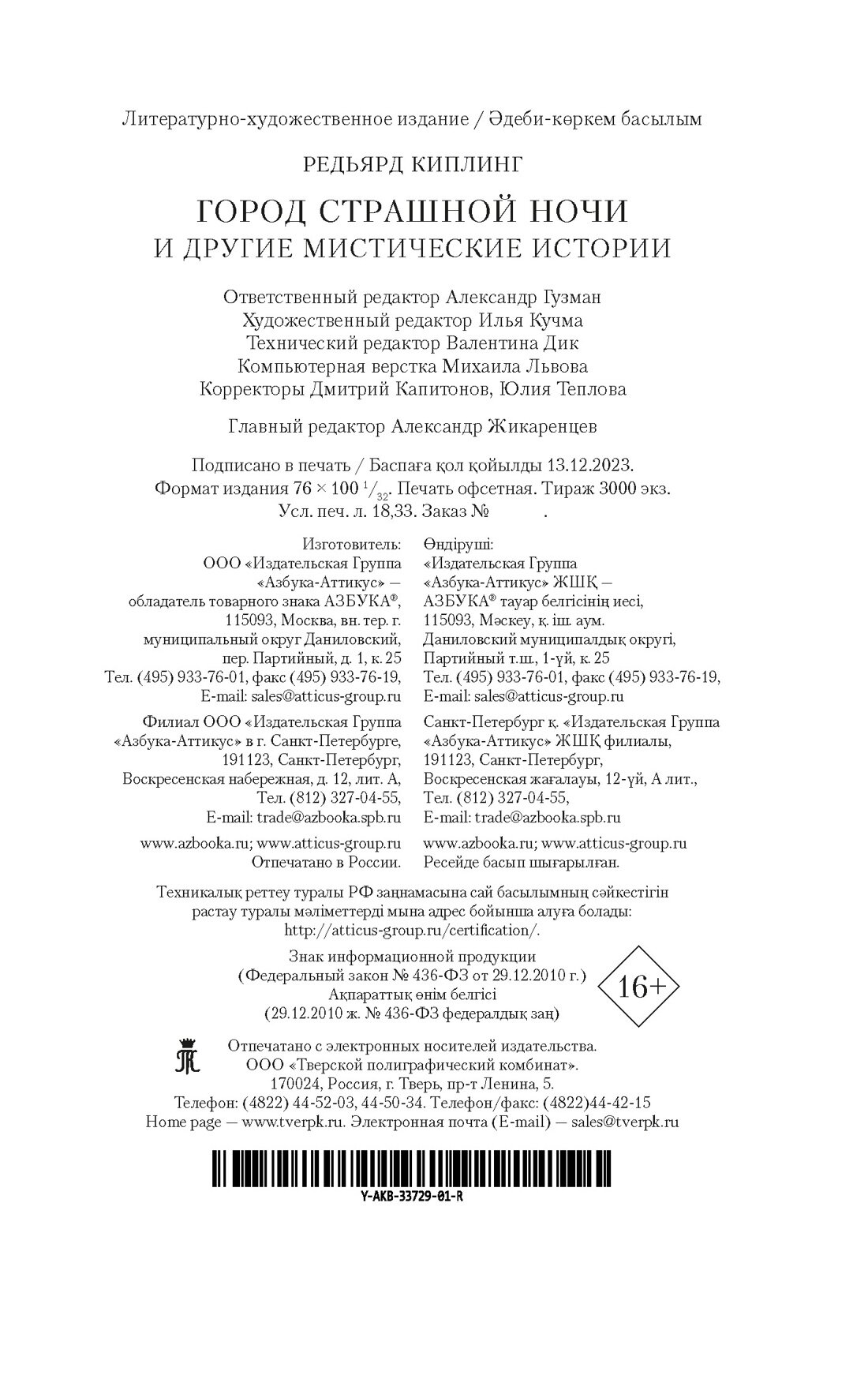 Город Страшной Ночи и другие мистические истории (Редьярд Киплинг); Азбука, 2024