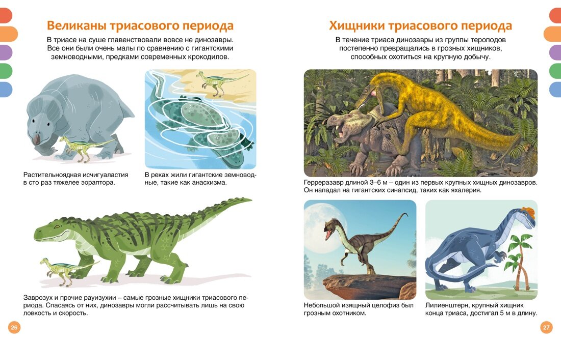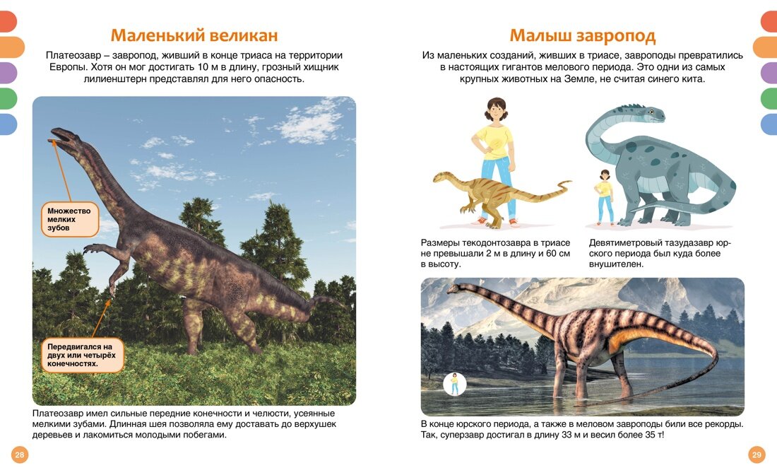 В этой книге представлены не только самые знаменитые, но также недавно открытые динозавры – грозные хищники, мирные гиганты и юркие охотники. У одних были острые клыки и огромные когти, у других – необычные выросты на голове и теле, а у некоторых даже имелся клюв или яркое оперение! Юные читатели не только узнают всё о древних ящерах, но также познакомятся с животными, которые обитали на Земле вместе с динозаврами. В книгах серии – только самая актуальная информация и самые современные иллюстрации! И это ещё не всё: в конце каждой книжки собраны увлекательные задания и игры, которые помогут весело провести время и повторить изученное.