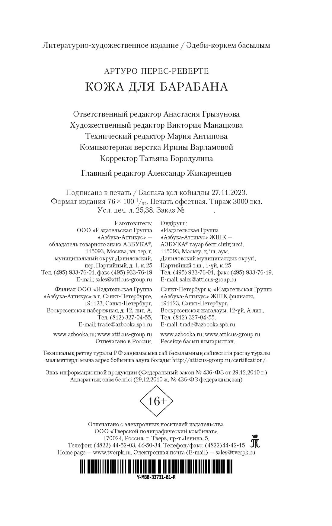 Книга: Кожа для барабана (Артуро Перес-Реверте); Азбука, 2024