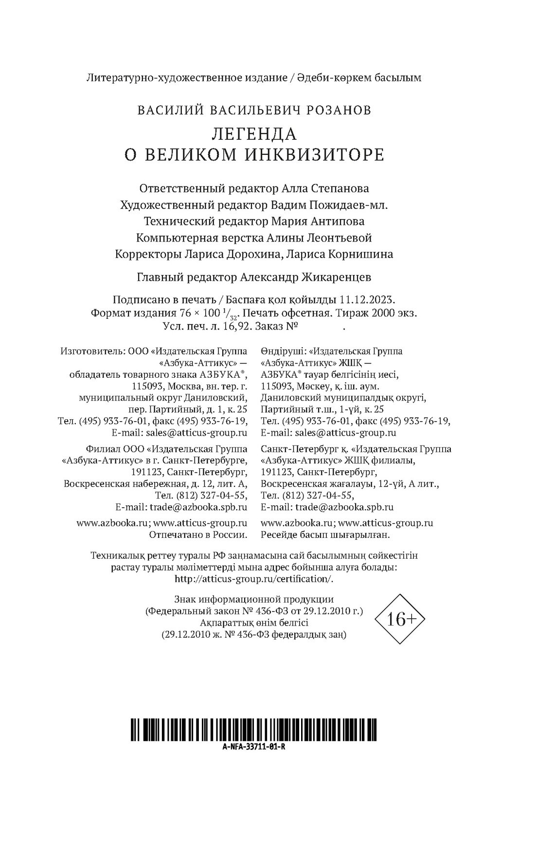 Легенда о Великом инквизиторе (Розанов Василий Васильевич); Азбука Издательство, 2024