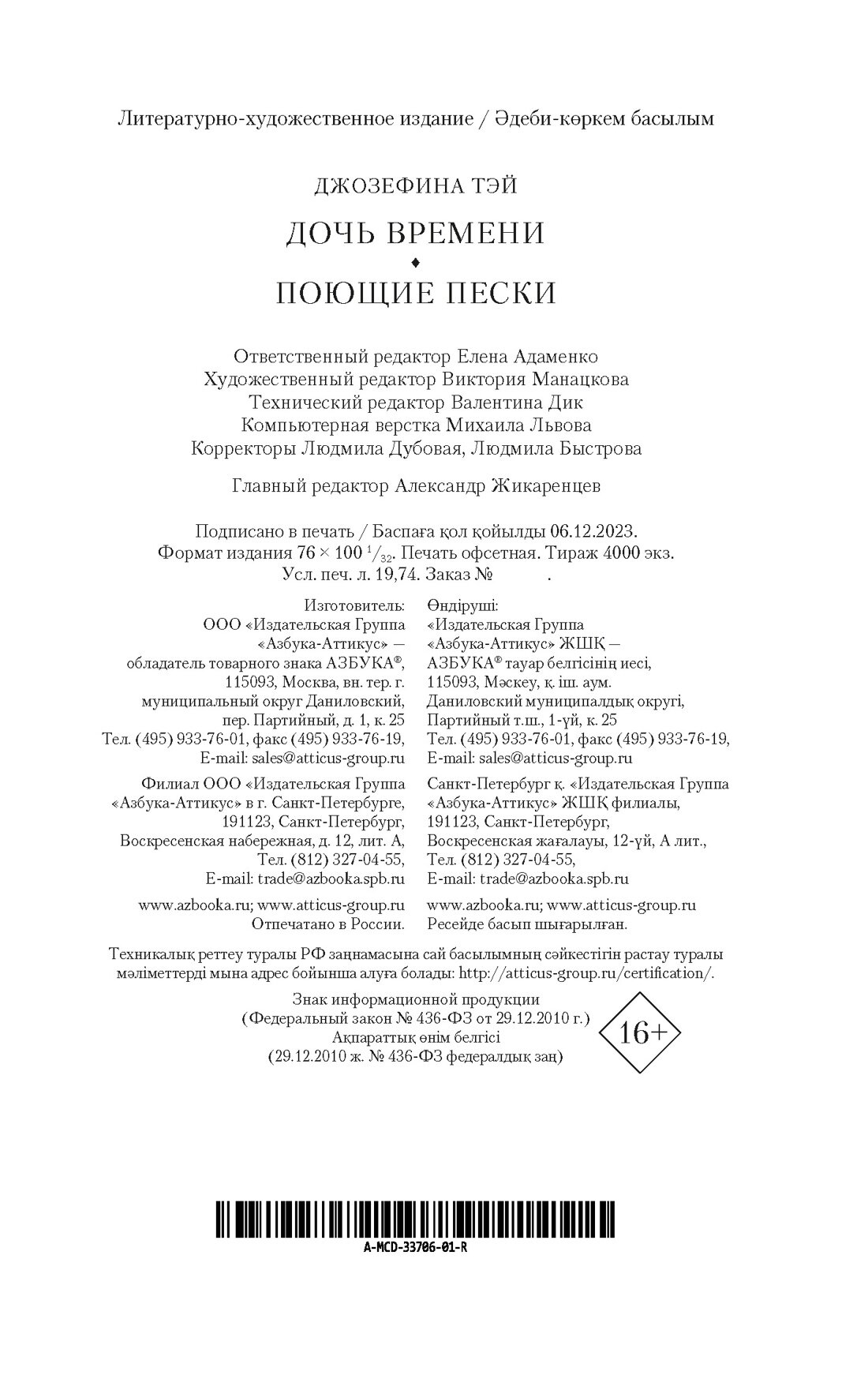 Дочь времени. Поющие пески (Тэй Джозефина); Азбука Издательство, 2024