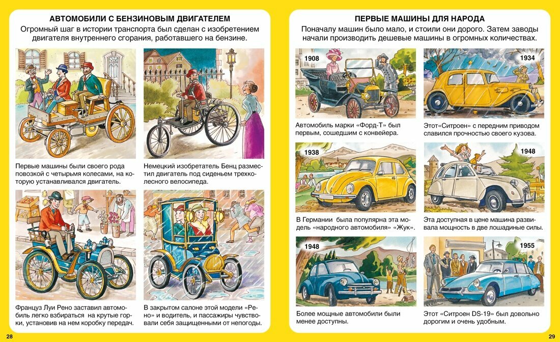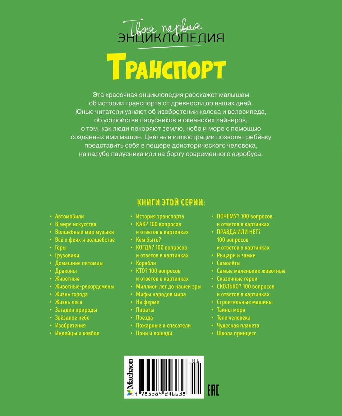 Эта красочная энциклопедия расскажет малышам об истории транспорта от древности до наших дней. Юные читатели узнают об изобретении колеса и велосипеда, об устройстве парусников и океанских лайнеров, о том, как люди покоряют землю, небо и море с помощью созданных ими машин. Цветные иллюстрации позволят ребёнку представить себя в пещере доисторического человека, на палубе парусника или на борту современного аэробуса.