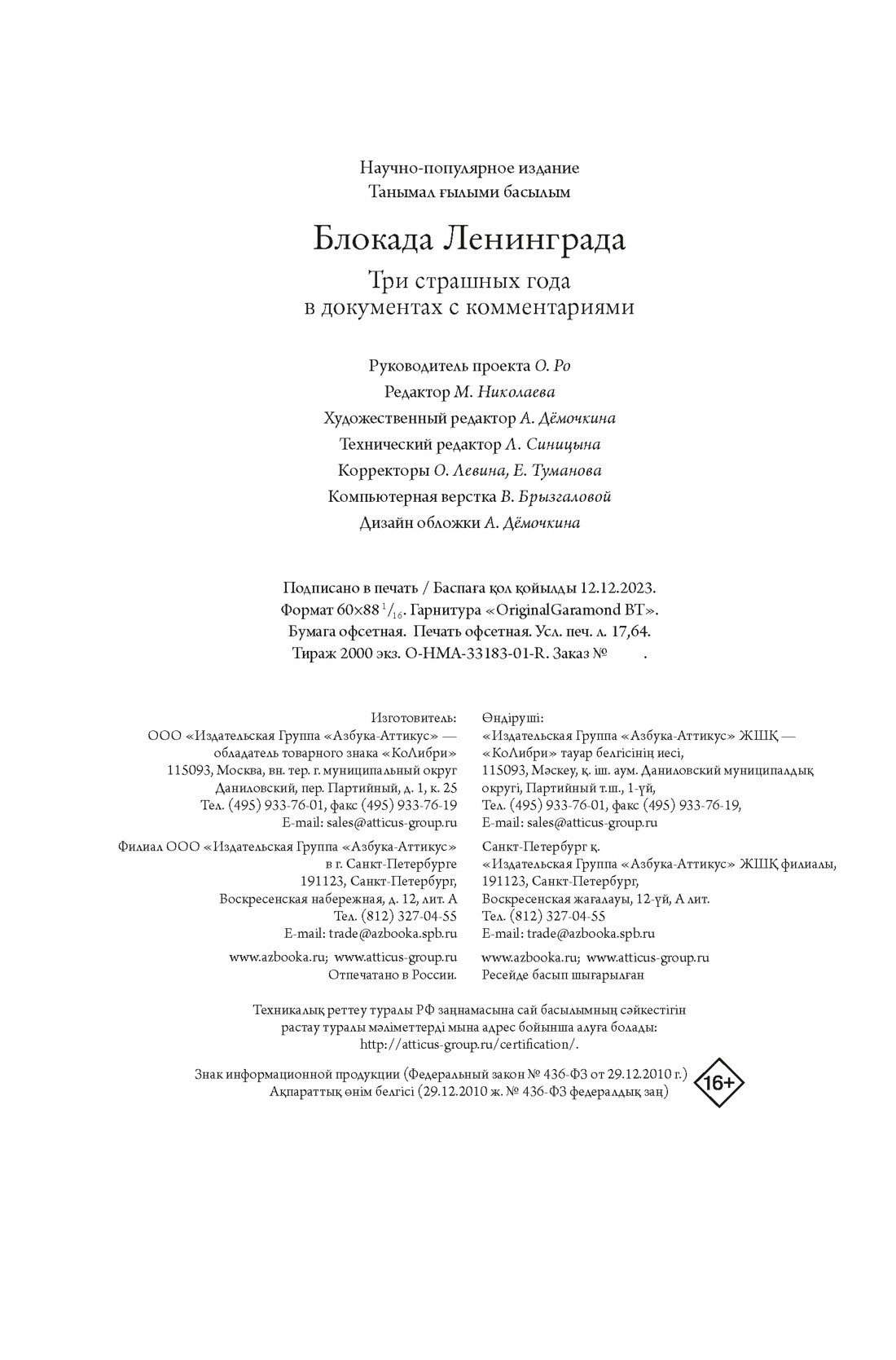 Блокада Ленинграда. Три страшных года в документах с комментариями. (Николай Волковский, Елизавета Солодовникова, Христофор Космидис); Азбука, 2024